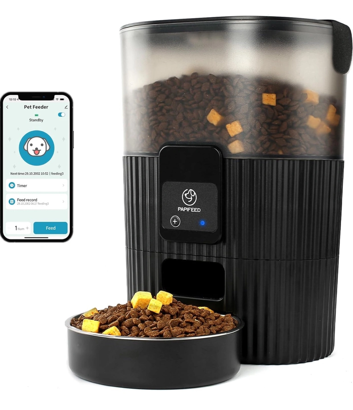 Automatic Cat Feeders with APP: WiFi Pet Dry Food Dispenser Compatible with Alexa & Echo,Smart Timed Auto Cat Feeder with Anti-bite Power Cord for Cats, Dogs,Up to 10 Meals Per Day(15 Cups)