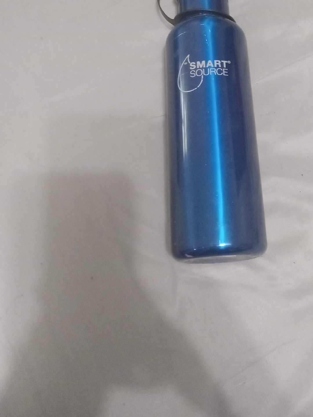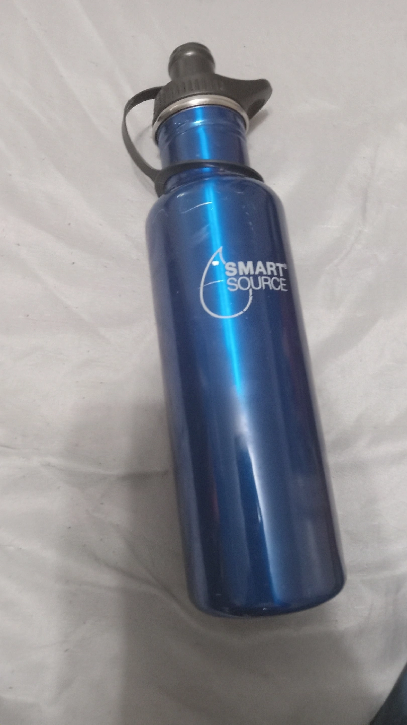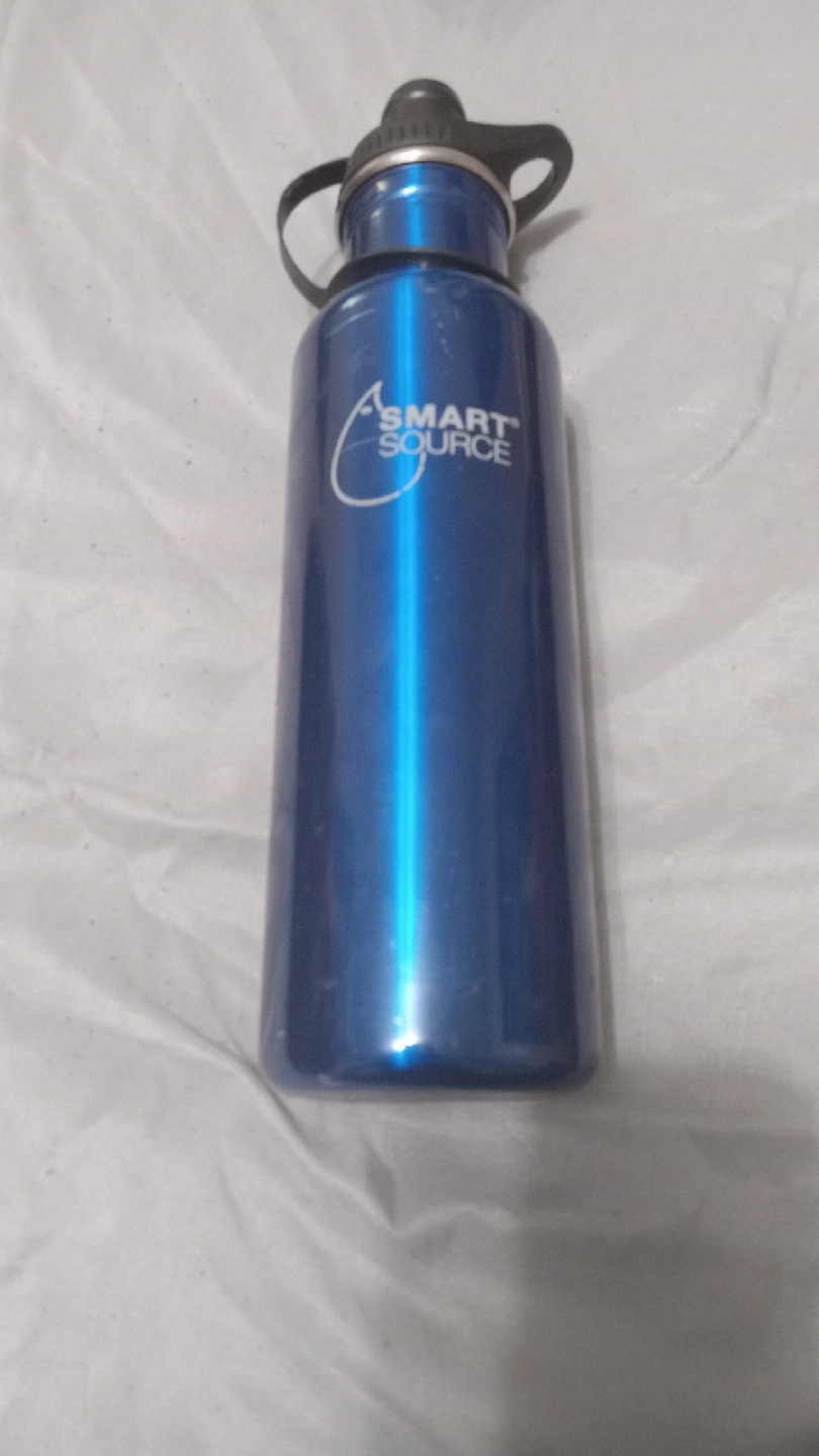 Selling a blue Smart Source water bottle. It has a few scratches, but is otherwise in good condition. It's perfect for staying hydrated on the go