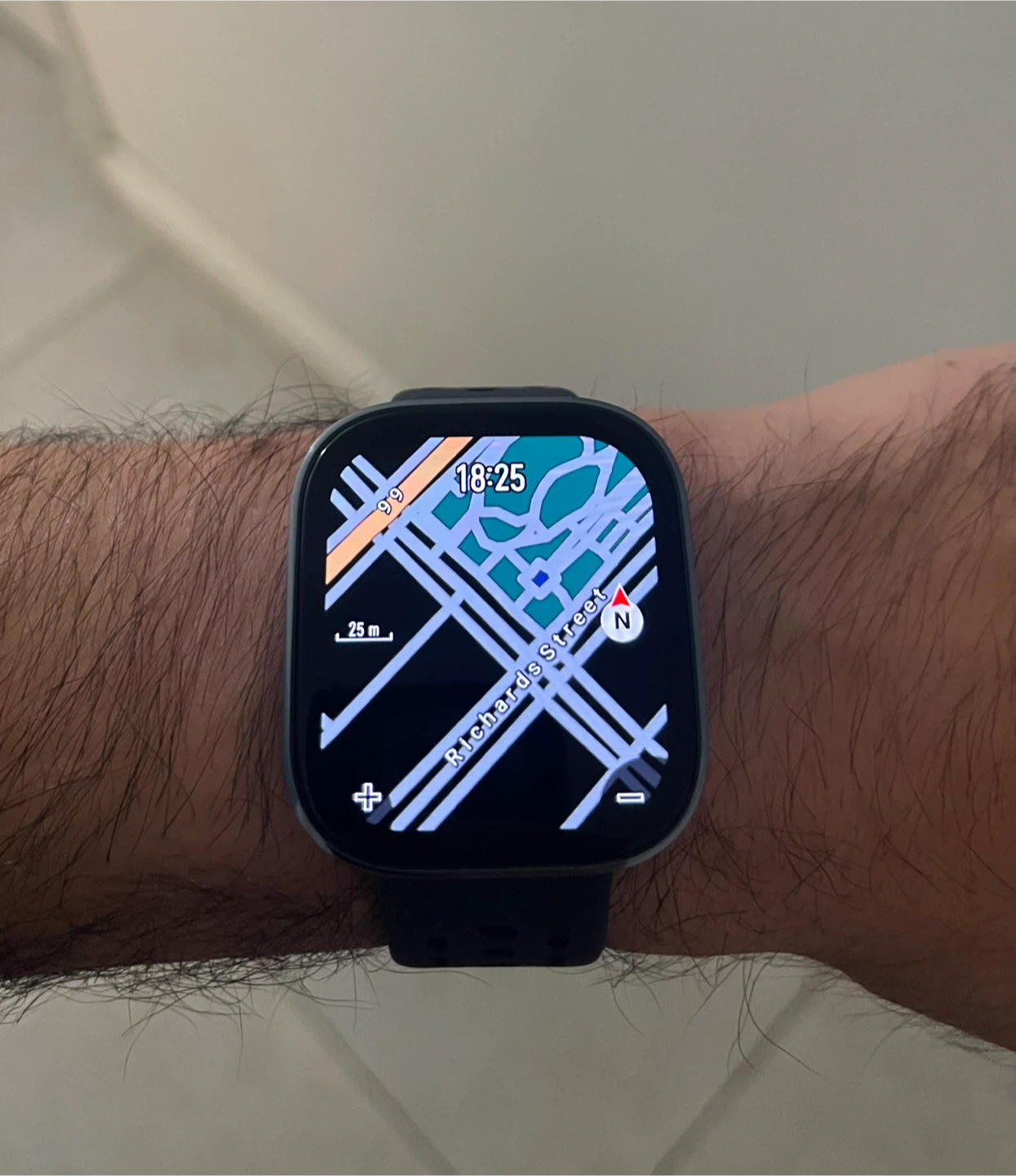 1.97 Amoled screen GPS Map Advanced health tracking AI voice assistant, AI coach Bluetooth call, sms, email, WhatsApp, etc 150 workout modes Water resistant (50 meters) 10 days of battery life Always On Display mode Comes with a charger and 22mm universal silicone band.