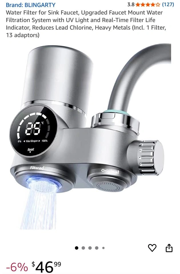 Smart Water purifier and Filter for Sink Faucet all included. I paid 80 dollars for 2 items is brand new. I don’t have the box from Amazon. Change the water flavor and taste more cheaper then buy new good brand and product.