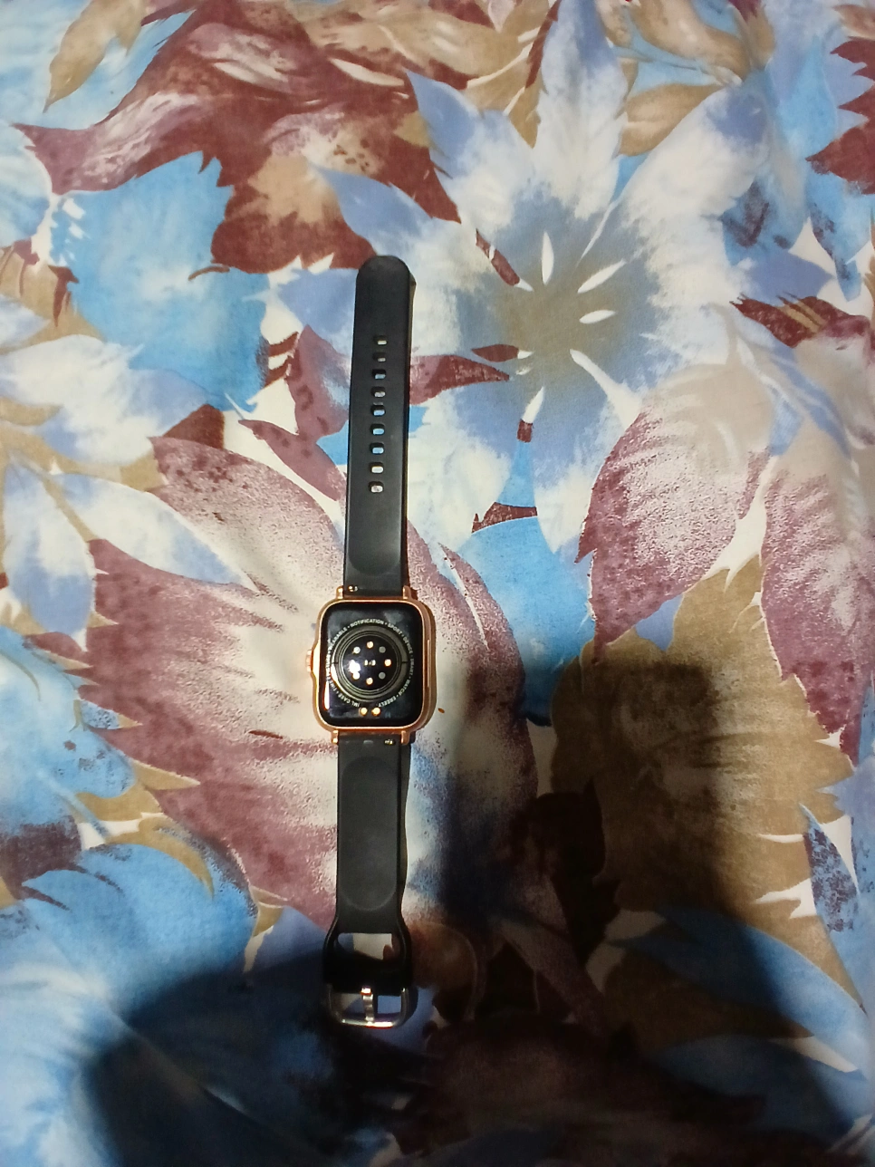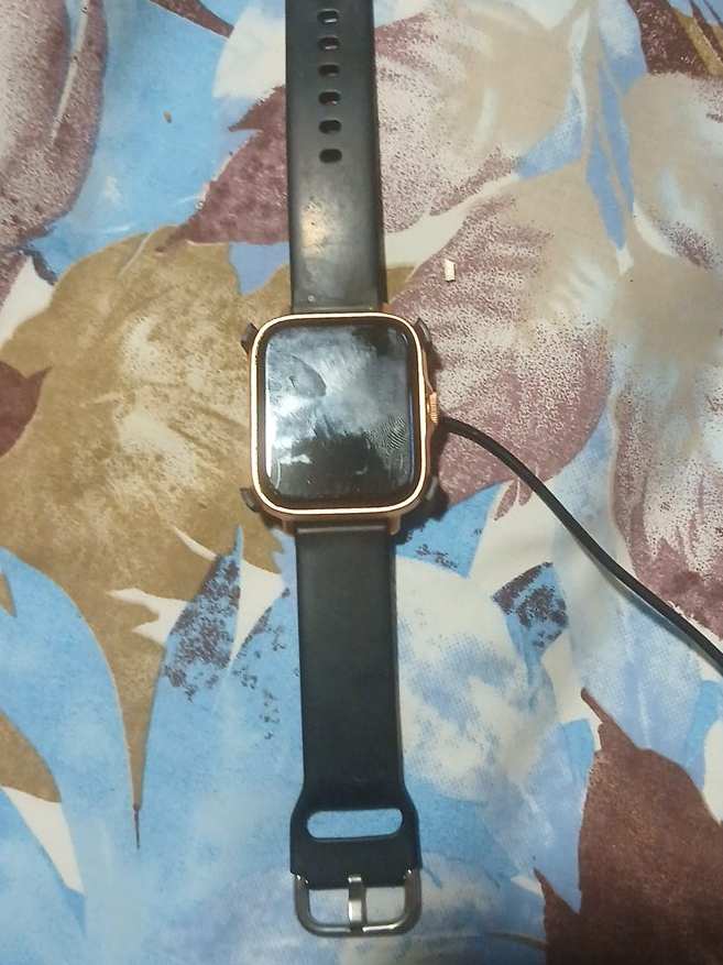 Selling a smartwatch with a black band. It's in good condition and comes with a charger
