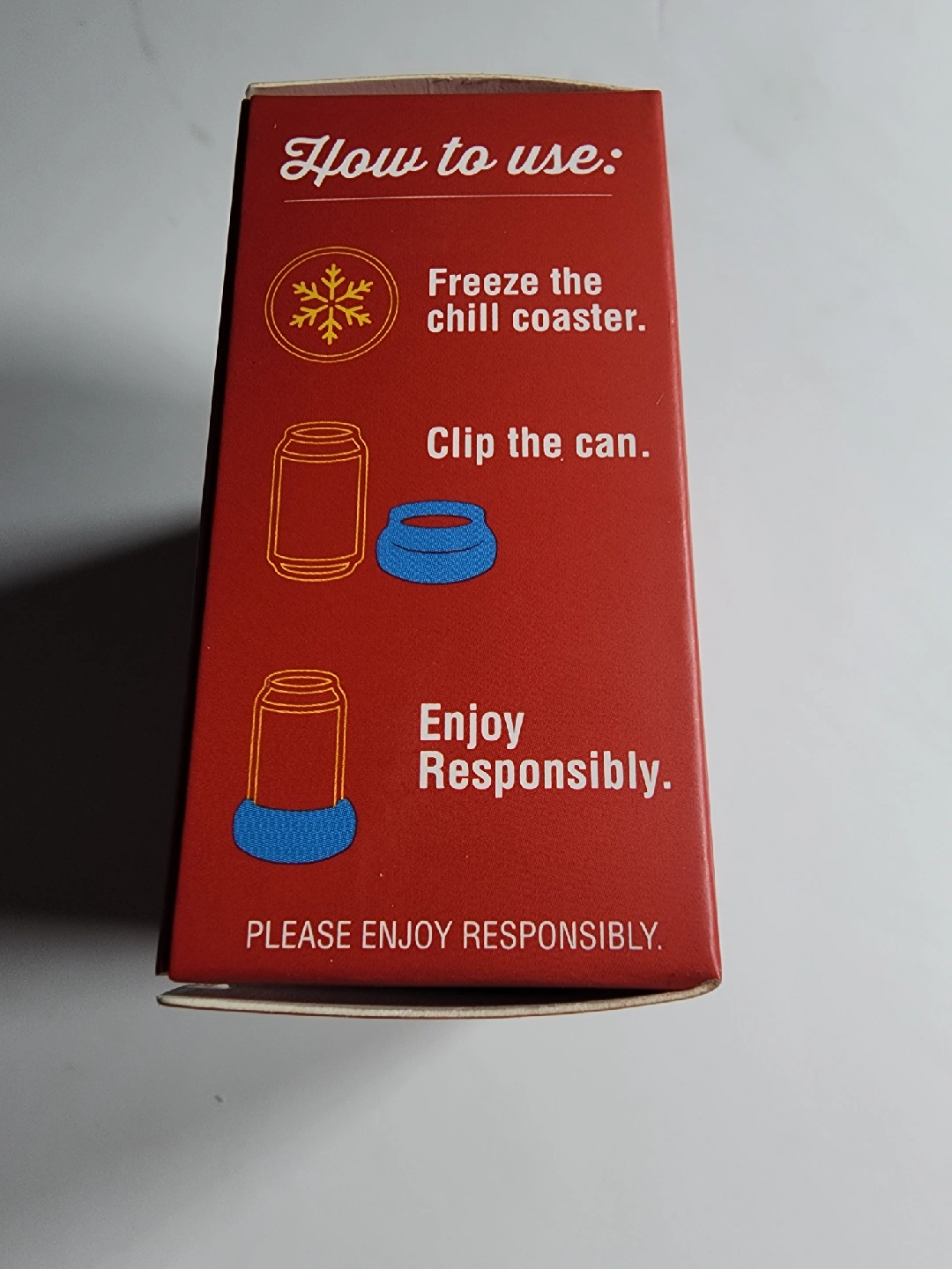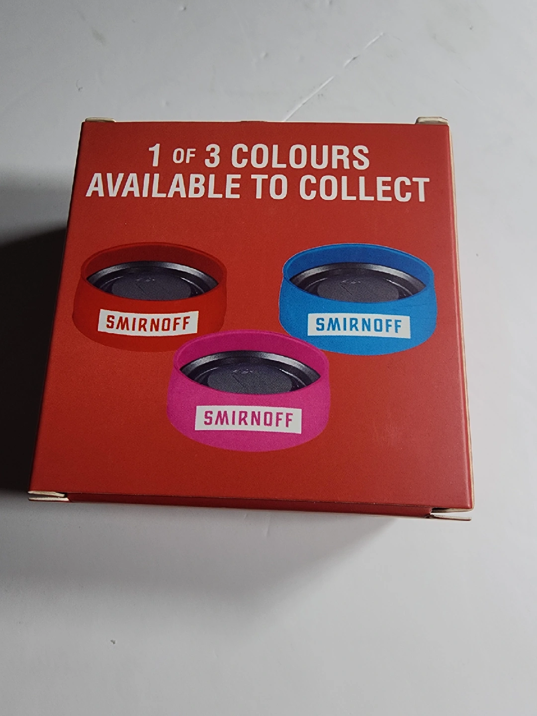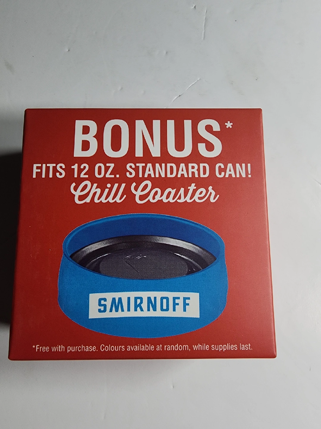 Keep your drinks cool with this Smirnoff Chill Coaster! It's designed to fit 12 oz standard cans. Just freeze the chill coaster, clip it on your can, and enjoy responsibly. One of three colours available to collect!
