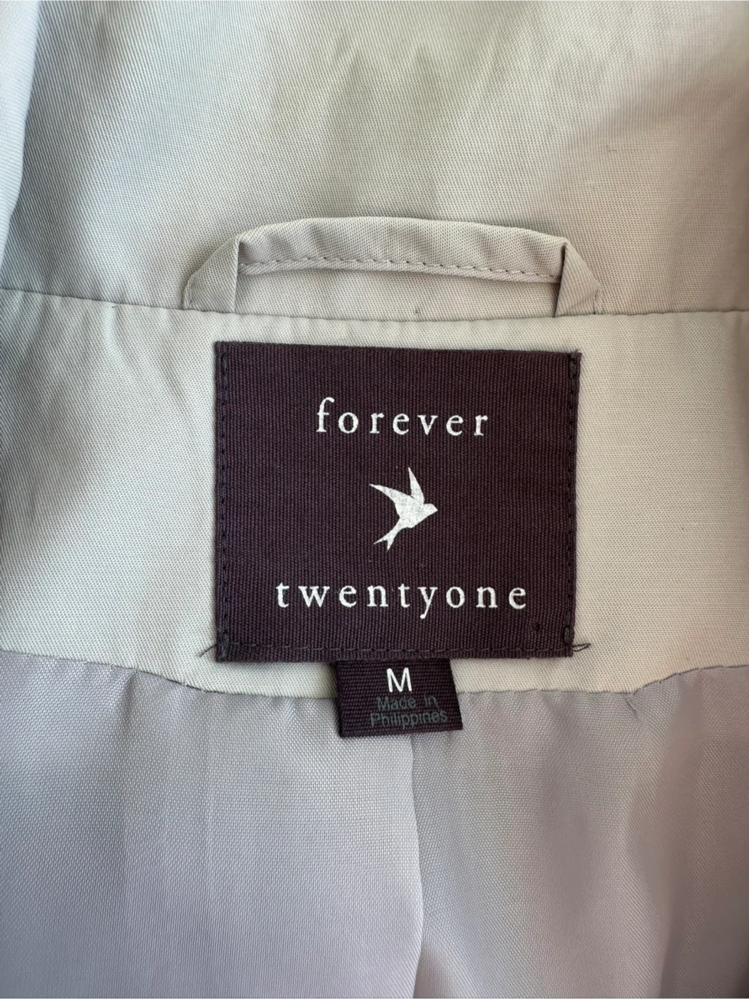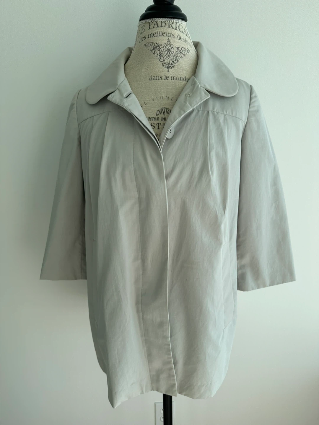 A relaxed fit grey jacket, perfect for spring or fall by Forever 21. It features a 3/4 sleeve, pleats in the back and a Peter Pan collar. It's in great condition and perfect for in between seasons! Bust: ~19 inches Length: ~28 inches Sleeves: ~17 inches