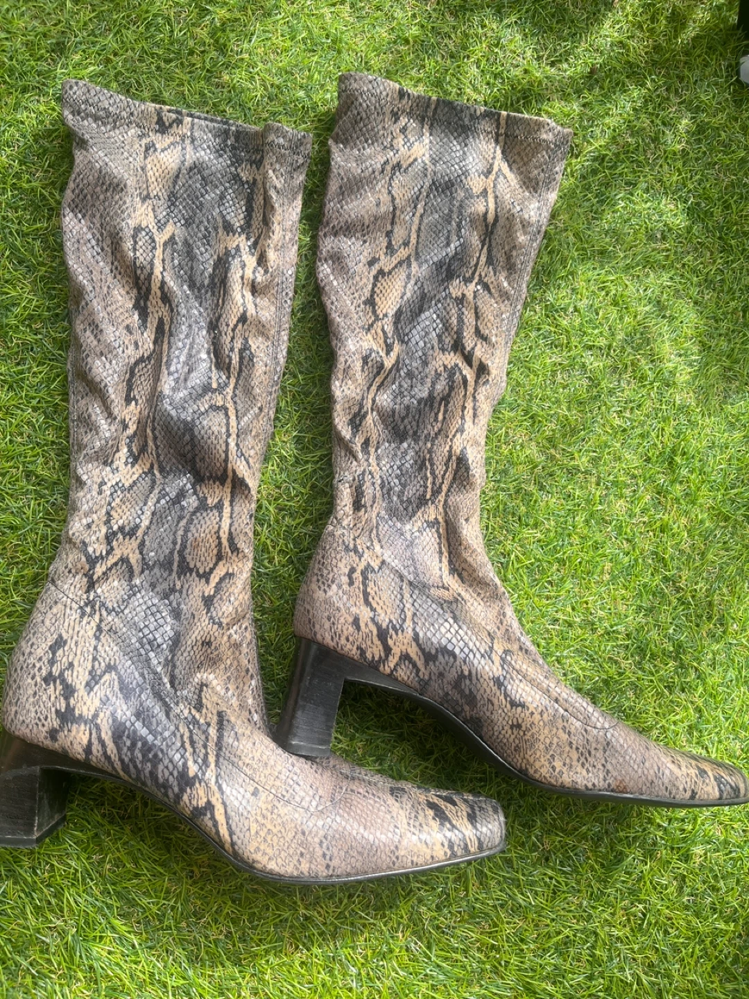 Stylish snakeskin print knee high boots in great condition! These boots are a size 9 B (US/Canada). Made in Italy, they're perfect for adding a unique touch to your wardrobe . Perfect for party and concert.