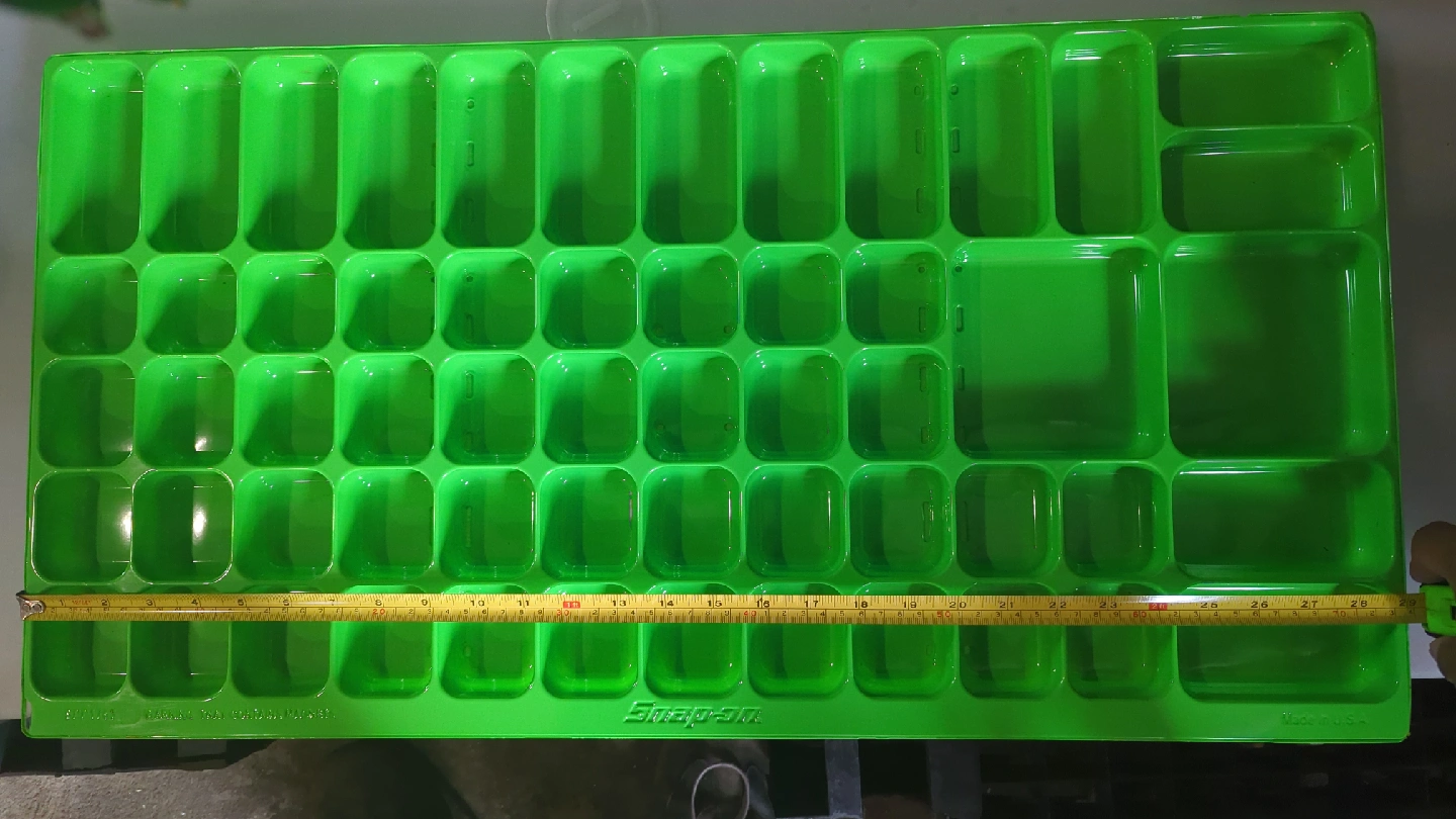 Selling a BNIB never used Snap-on magnetic tray organizer in bright green. It's perfect for keeping your tools and small parts organized in your workspace. The tray has magnetic strips on the back of it which also allow magnetic adhesion of parts or tools in the individual compartments. It features a variety of compartments to accommodate different sizes of items. Great for any mechanic or DIY enthusiast! Item has been discontinued by Snap On, and is much larger than the ones currently offered on their website.