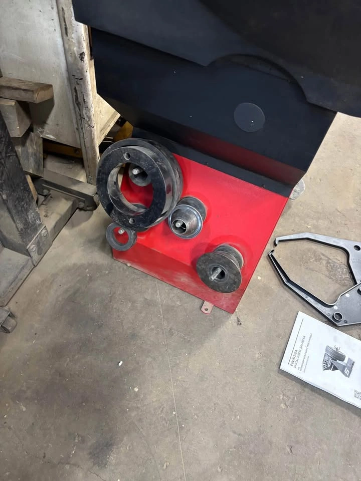 Been used in a shop for 5 years been good machine just upgraded to a bigger machine this one is a hand spin unit