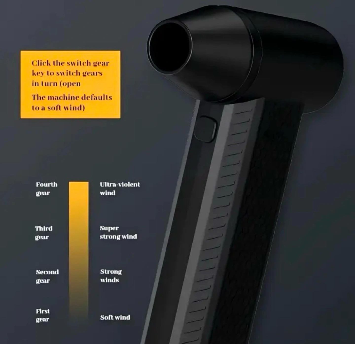 Ultra-Powerful Turbo Fan with 130,000 RPM Brushless Motor - USB Rechargeable, High-Speed Wind for Dust & Snow Removal, Compact Design, Easy One-Button Operation Easy to Carry because small in size Easy to remove snow from car Easy to remove dust In just 1 minute, this thing removes snow from your car. It is brand new comes in sealed box