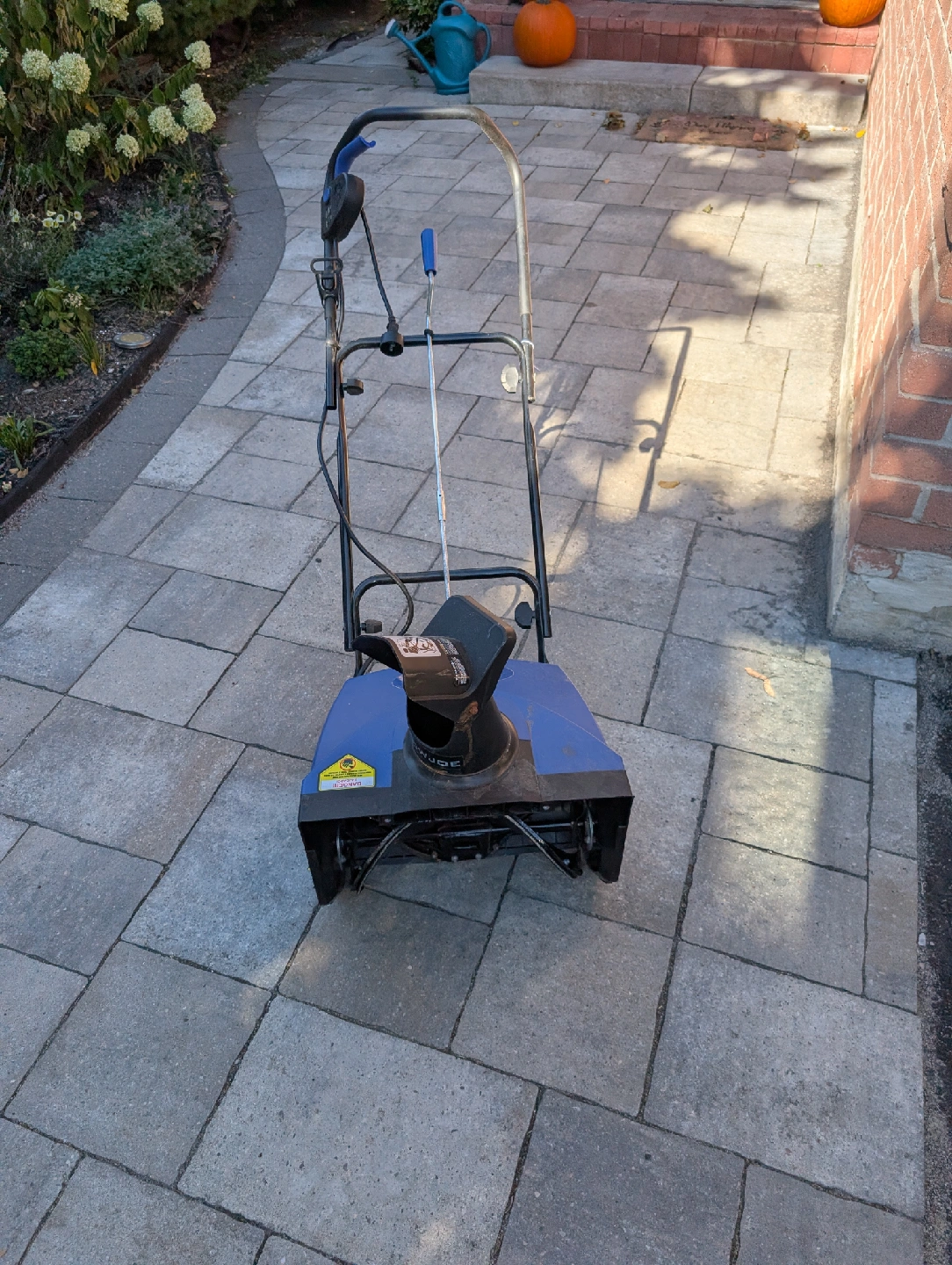 Selling a Snow Joe 18-inch 13.5-Amp Electric Snow Thrower, model SJ5030. It's in good working condition and ready to help you clear the snow this winter