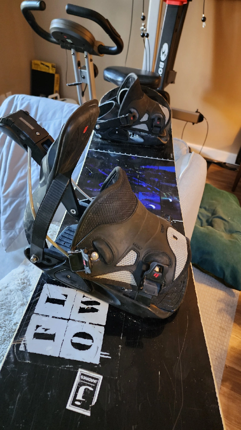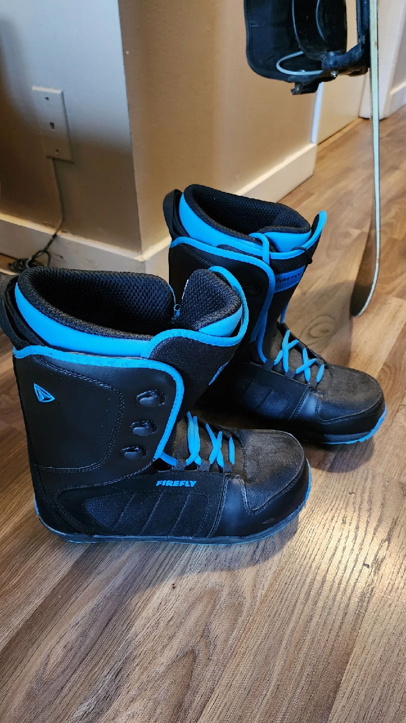 Selling a used snowboard, bindings, and boots. Flow Jardine board. The boots are good condition Firefly and are black and blue. Size 11