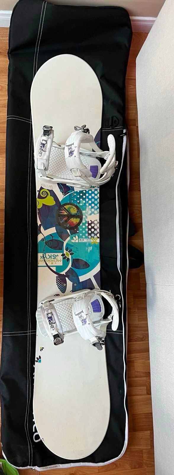 Get ready to carve up the slopes with this Morrow Sky 144cm snowboard! This snowboard has seen some action and is in used condition, ready for its next adventure. Perfect for someone looking to progress their skills. Key Features: - Brand: Morrow - Model: Sky - Length: 144cm - Bindings: Dakine This board has plenty of life left and is just waiting for its next run. Don't miss out on the opportunity to own it! Including compatible snowboard boots (fit women’s size 9), helmet, and carrier bag. If the ad is still up, the snowboard bundle is still available, so no need to ask! Grab it in time for the season!