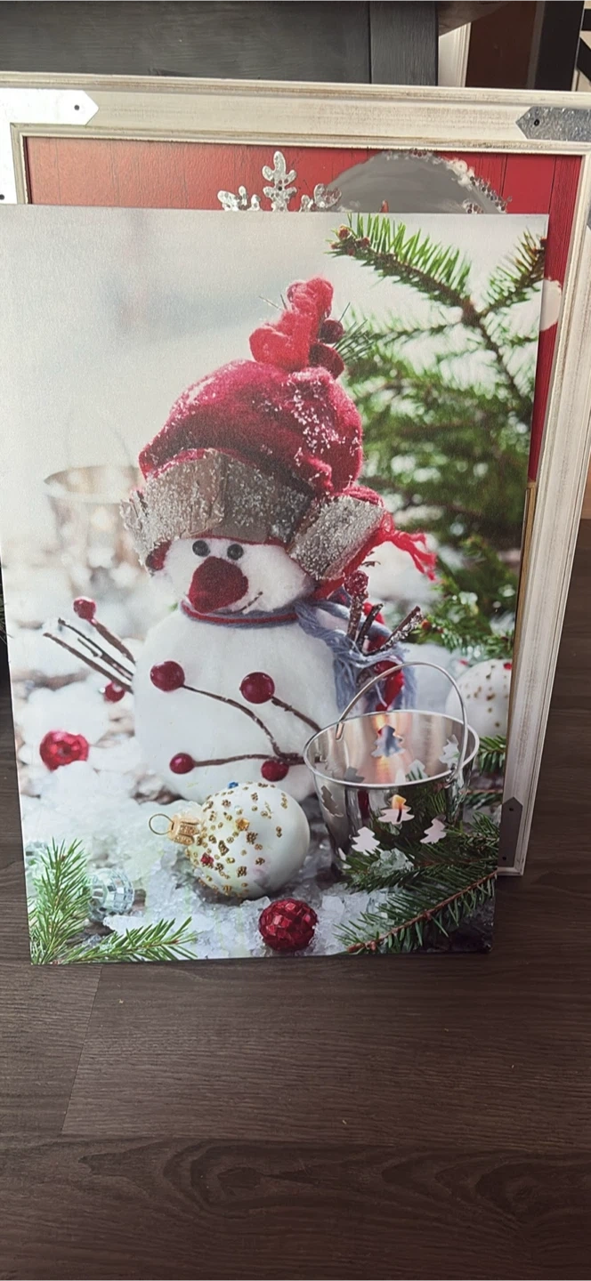 Festive canvas snake man canvas, perfect for adding a touch of holiday cheer to your home! The second picture shows how the lantern lights up.