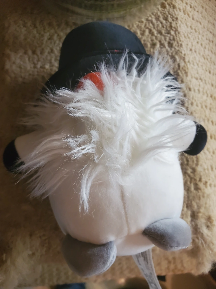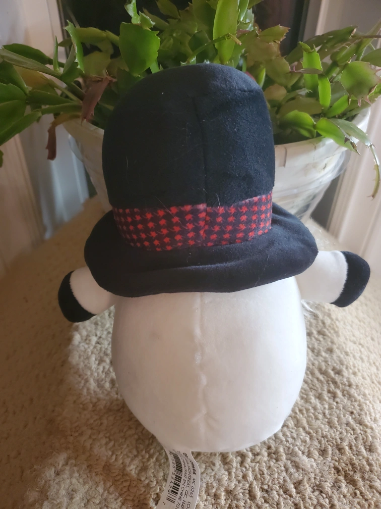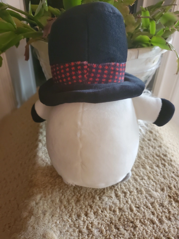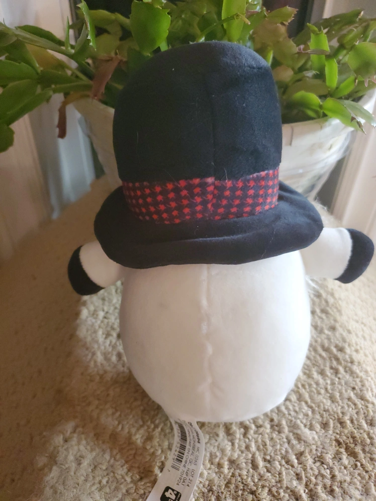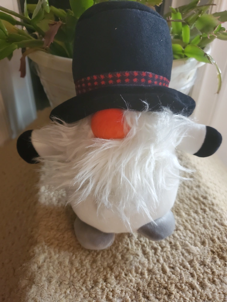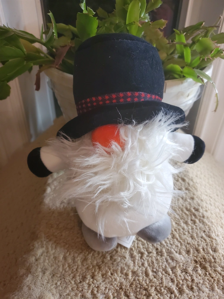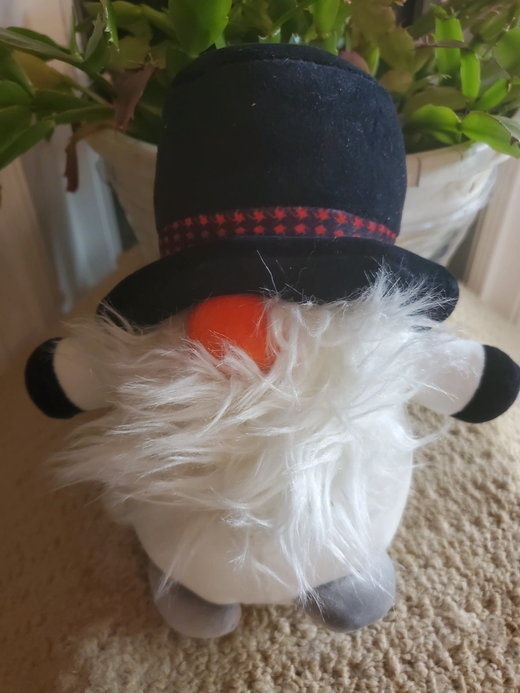 A cute little snowman gnome plush! It has a black top hat with a red and black checkered band, a white beard, and grey feet. Cedar pick up.
