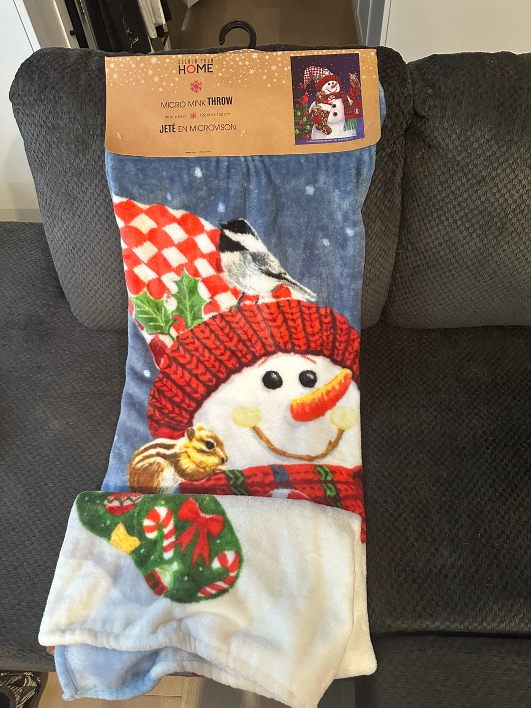 Snowman Micro Mink Throw It measures 48 inches by 60 inches (122 cm x 152 cm). Brand new