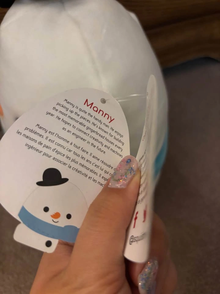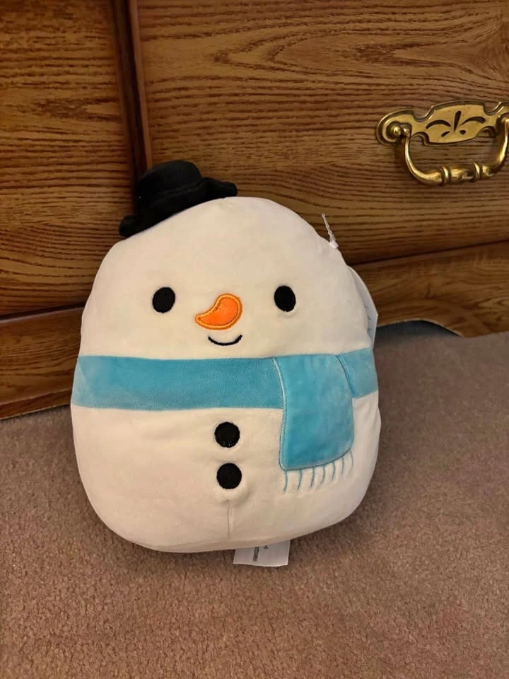 manny the snowman, perfect for upcoming white elephants/christmas presents for people you barely know! 7” squishmallow, BNWT pet-free, smoke-free home downsizing my collection :) more squishmallows on my profile!