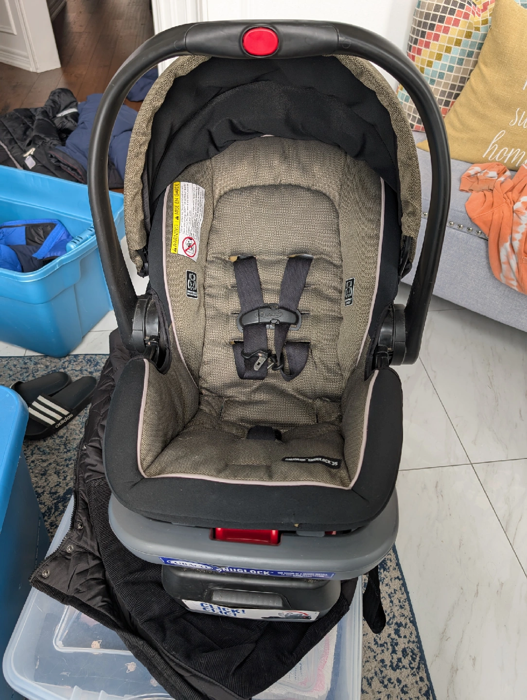 Selling a Graco Snugride Snuglock 35 infant car seat. It's in great condition and ready for a new little one! This car seat provides a safe and comfortable ride for your baby. The Snuglock technology makes installation easy and secure.