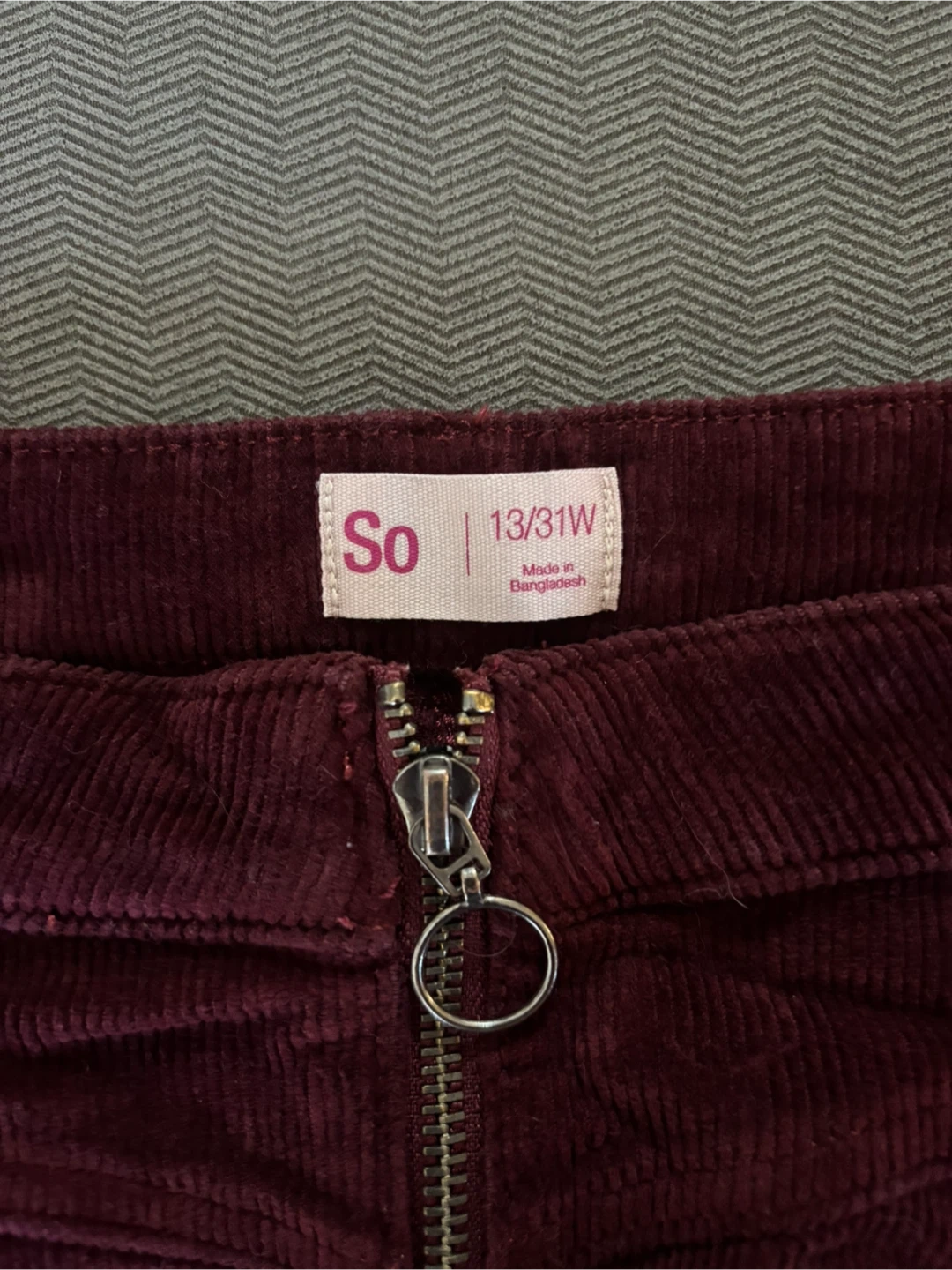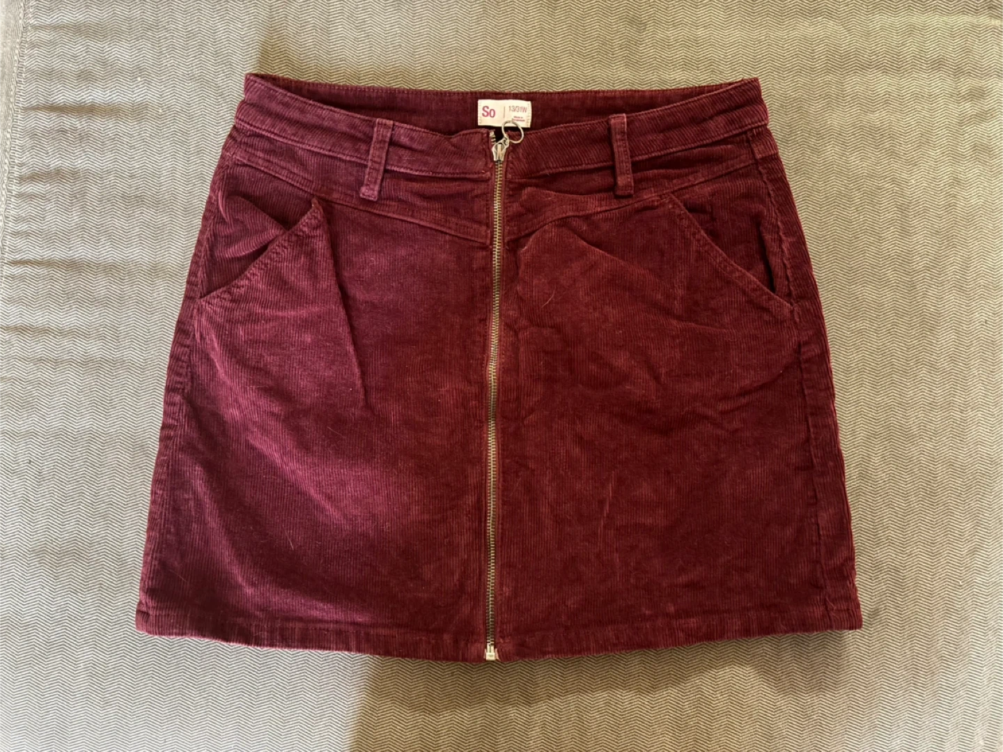 This is a cute corduroy mini skirt from the brand So! It's a size 13/31W and features a zipper in the front. The colour is a lovely deep burgundy. Perfect for fall! Pick up in debert or truro! Check out my other listings as well :)