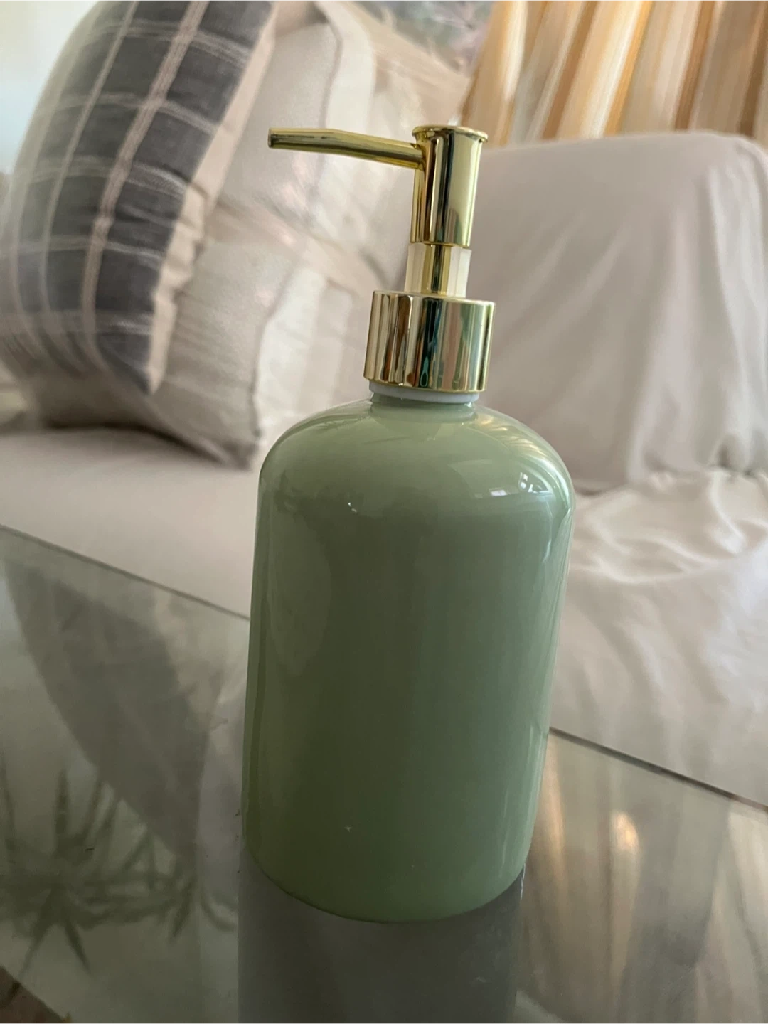 Ceramic Roughly 3” diameter x 8” height Colours are polished glossy Brand new Comes with liquid soap Cash preferred