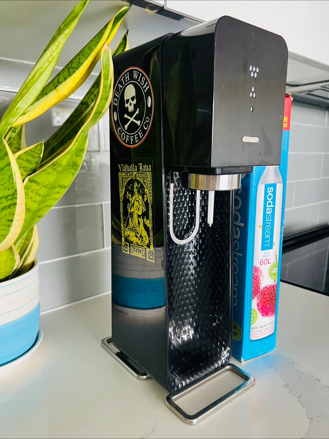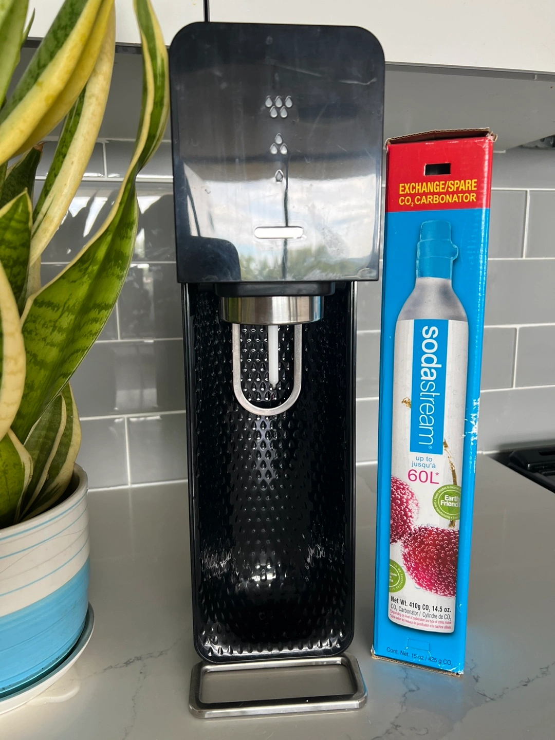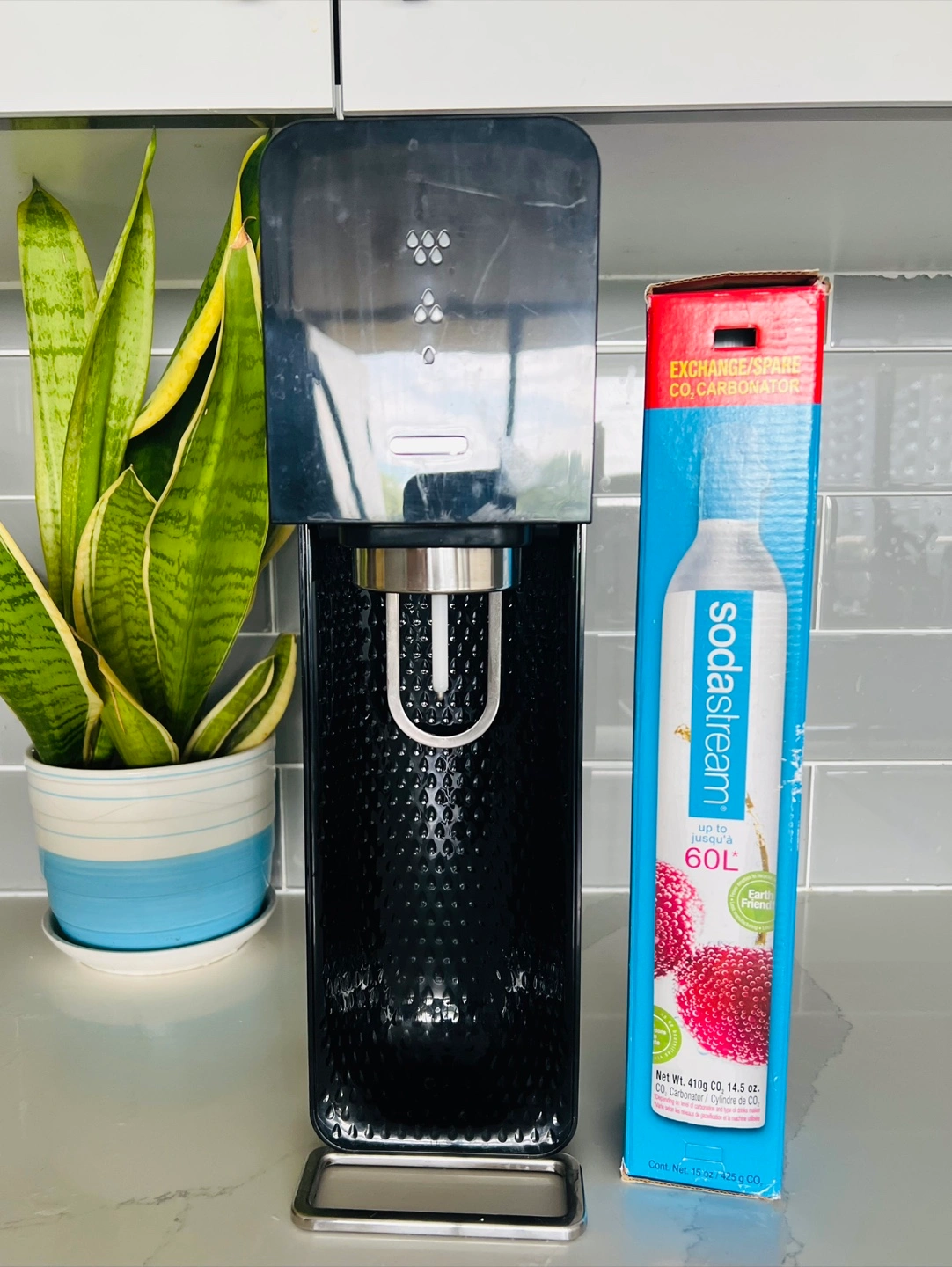 Get bubbly with this SodaStream sparkling water maker! Bought it for $80+tax. Used only twice/thrice. I’ll be giving away a carbonator but I’m not sure I how full it is or how functional it is. The sparkling water itself has been underused and been in storage. Has been priced that way for sale. The marks on the surface are reflections, no concern there. Cash only. Pick up please downtown Toronto.