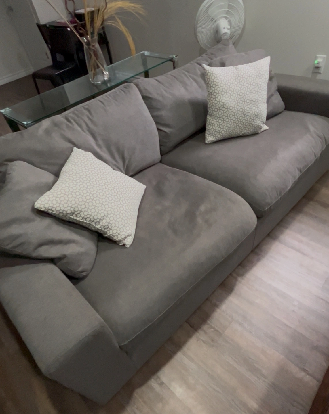 *free local delivery I'm selling a SOFT contemporary 3-seater sofa! It's a comfy couch with a modern look. The dimensions are 87" (221 cm) in width, 33.5" (85 cm) in depth, and 41.5" (105 cm) in height. Originally bought for $799 plus tax.