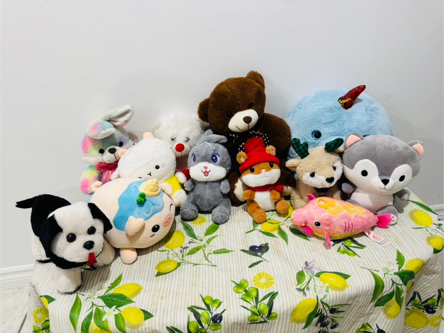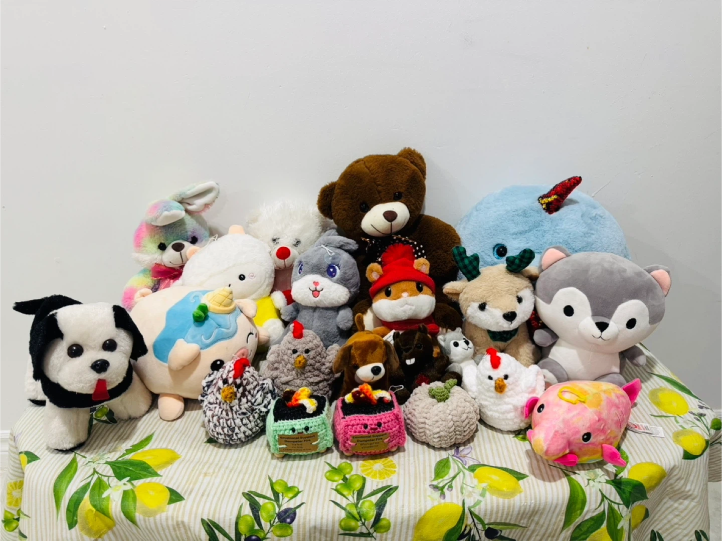 Selling a collection of 22 pieces of adorable handmade crochet plushies! These include chickens, pumpkins, and even a cute little 'emotional support dumpster fire' They're all in great condition and ready for a new home