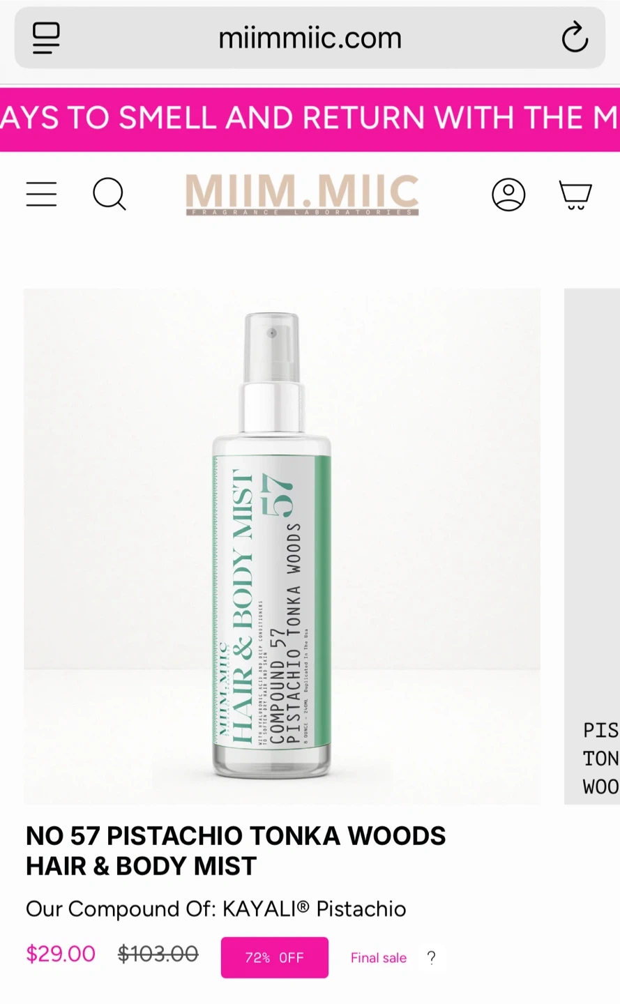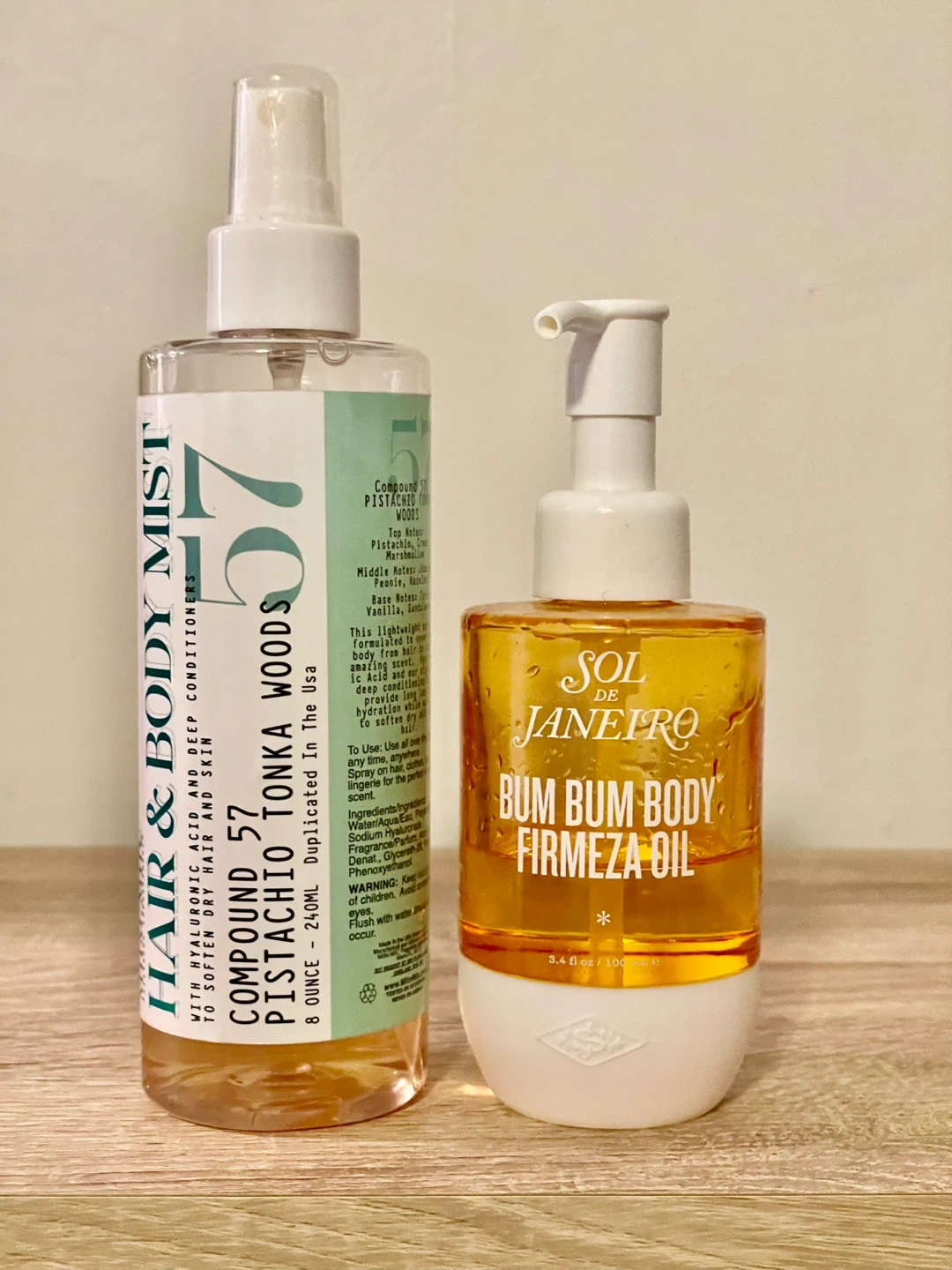 Selling a couple of lovely hair and body products! - Sol de Janeiro Bum Bum Body Firmeza Oil 100ml (half full) $25 - MiiMiic Compound 57 Pistachio Tonka Woods Hair & Body Mist 240ml (3/4 full) with hyaluronic acid and deep conditioners to soften dry hair and skin $15 Be the yummiest girl in the room and take both for $30!