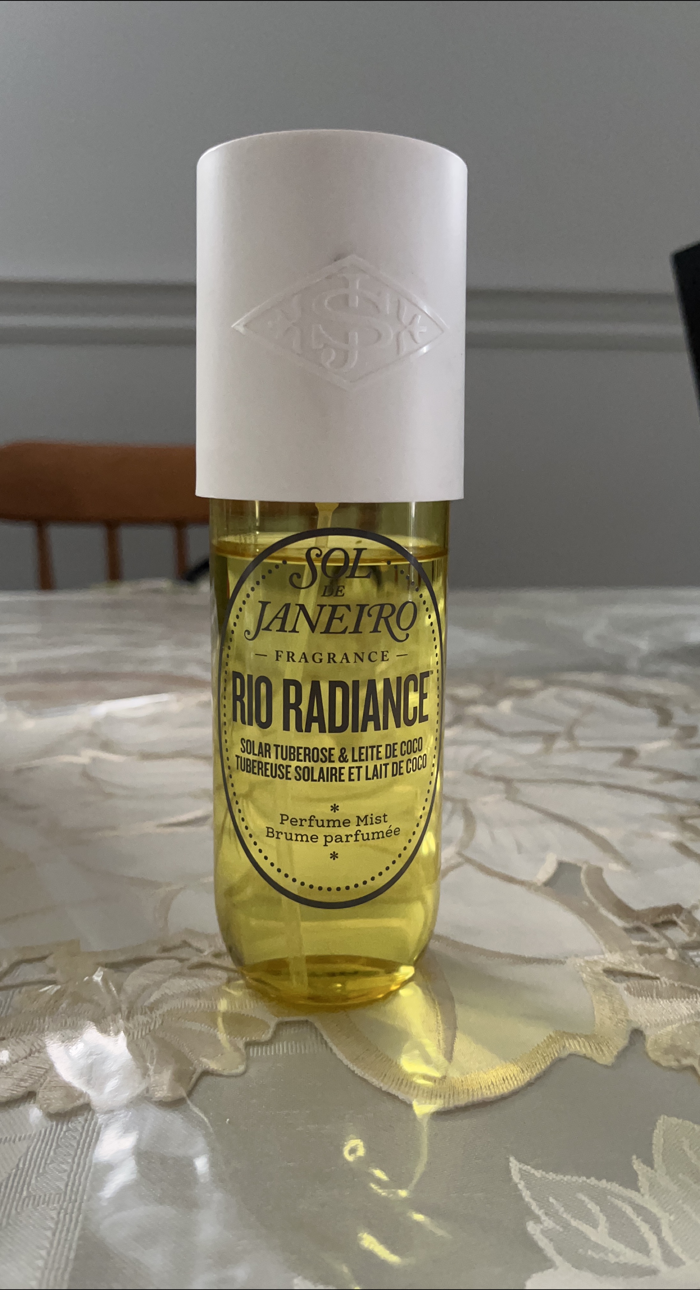 Selling a bottle of Sol de Janeiro Rio Radiance perfume mist. It features a solar tuberose and leite de coco scent. Perfect for a light and refreshing fragrance!