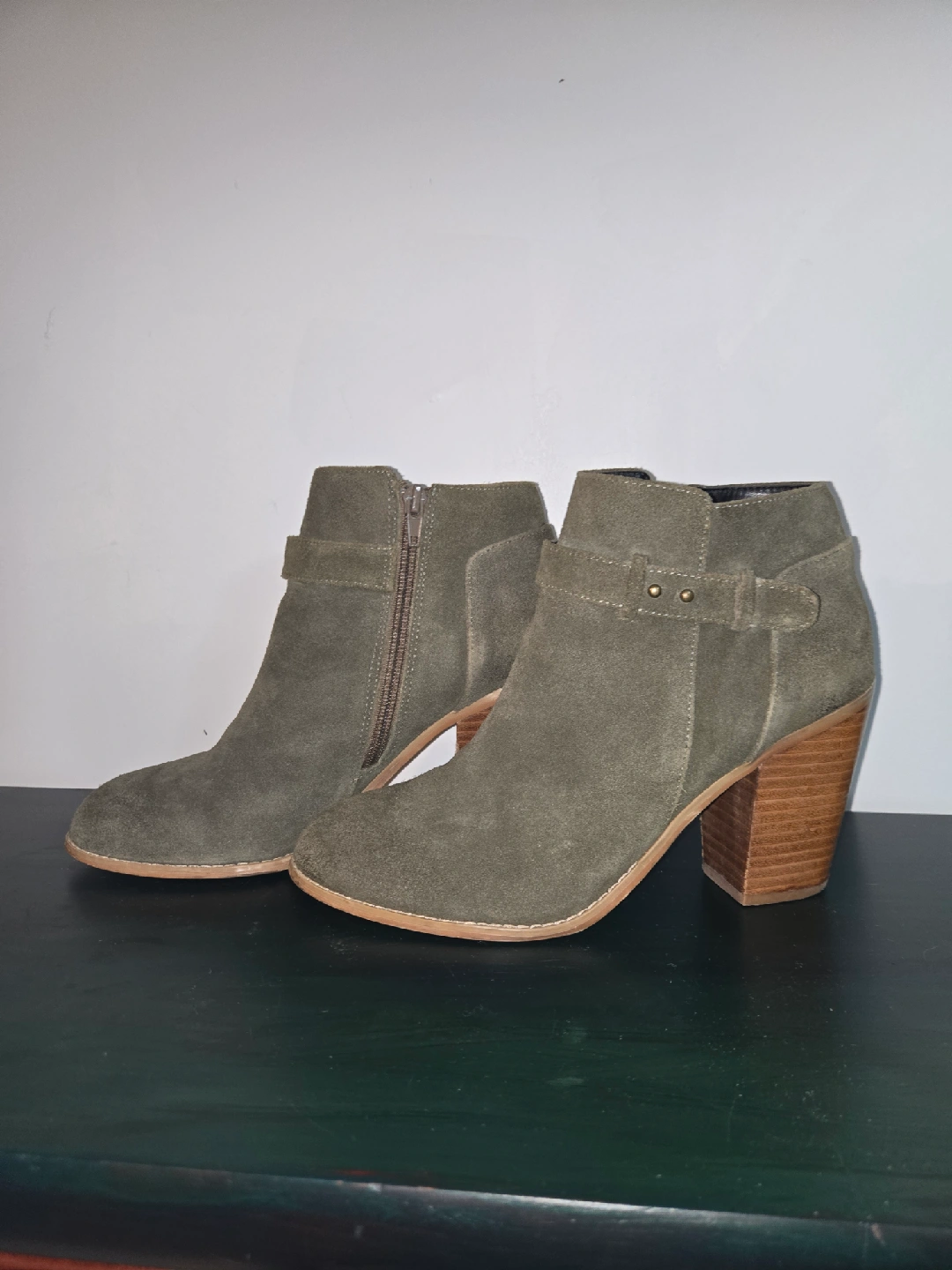 Selling a pair of Sole Society ankle boots in olive green! They're in great shape and ready for a new home. The size is 8.5.
