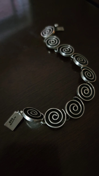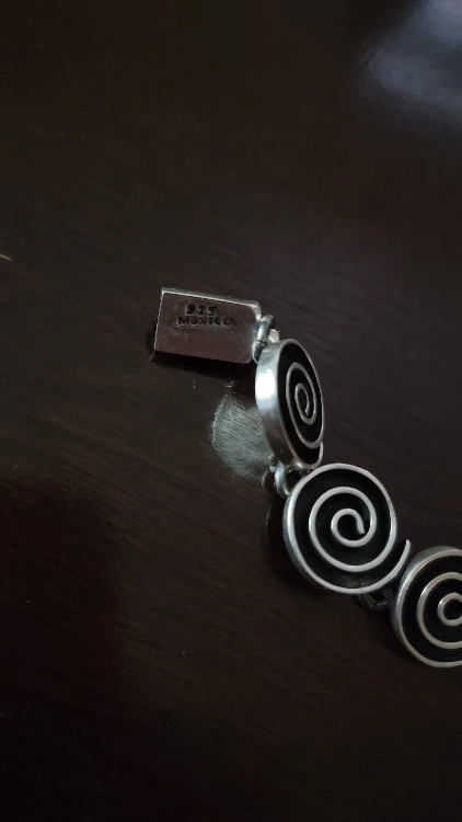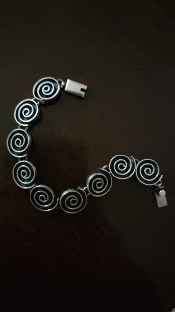 This is a beautiful vintage sterling silver bracelet featuring a unique spiral design. It was made in Mexico. A lovely piece to add to your jewellery collection. It's quite heavy. Fully made from solid silver and has a clasp closure. I'm only asking for $30 on it.