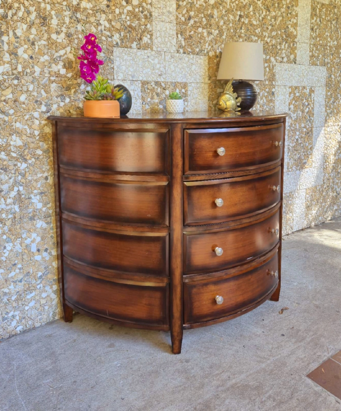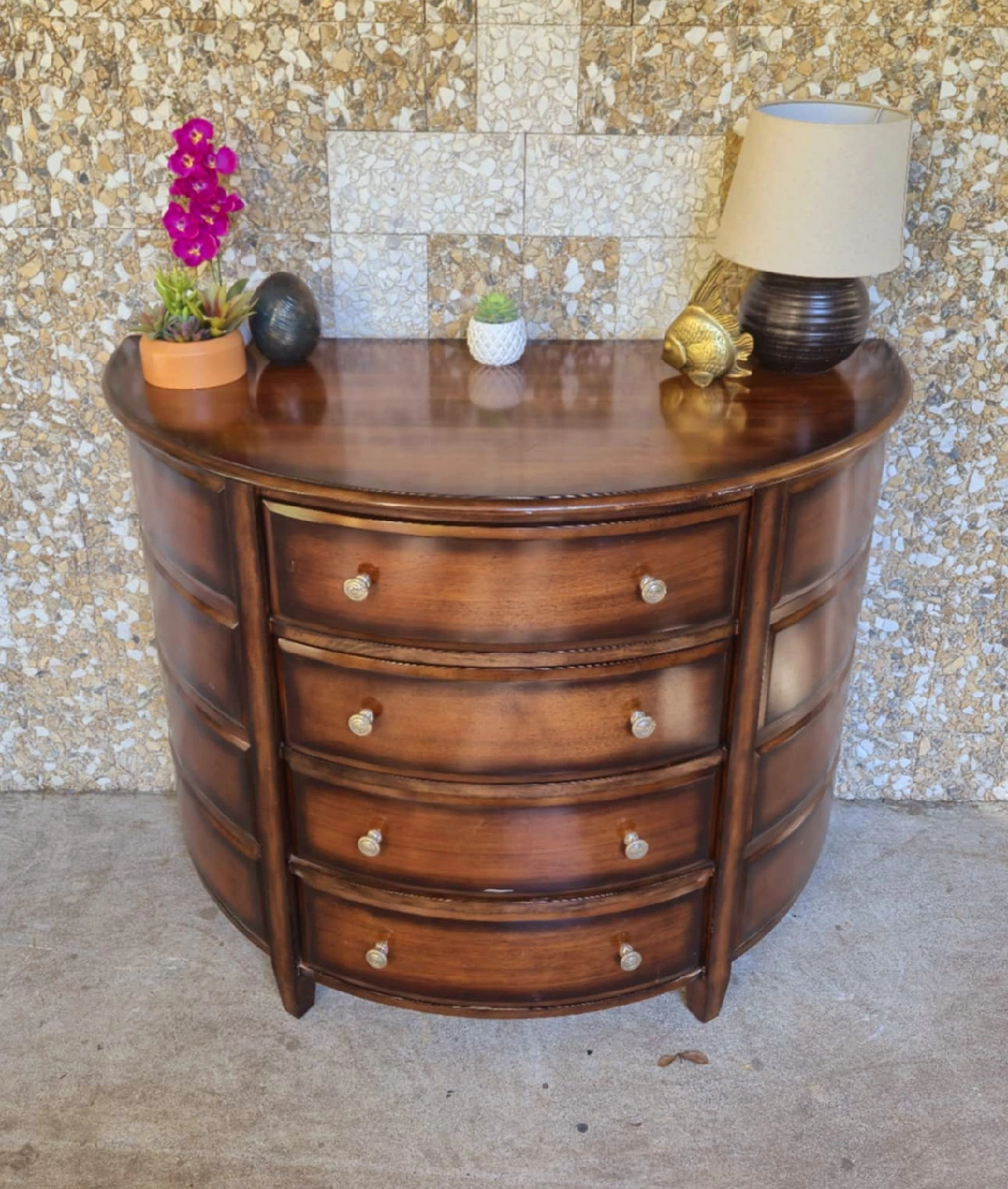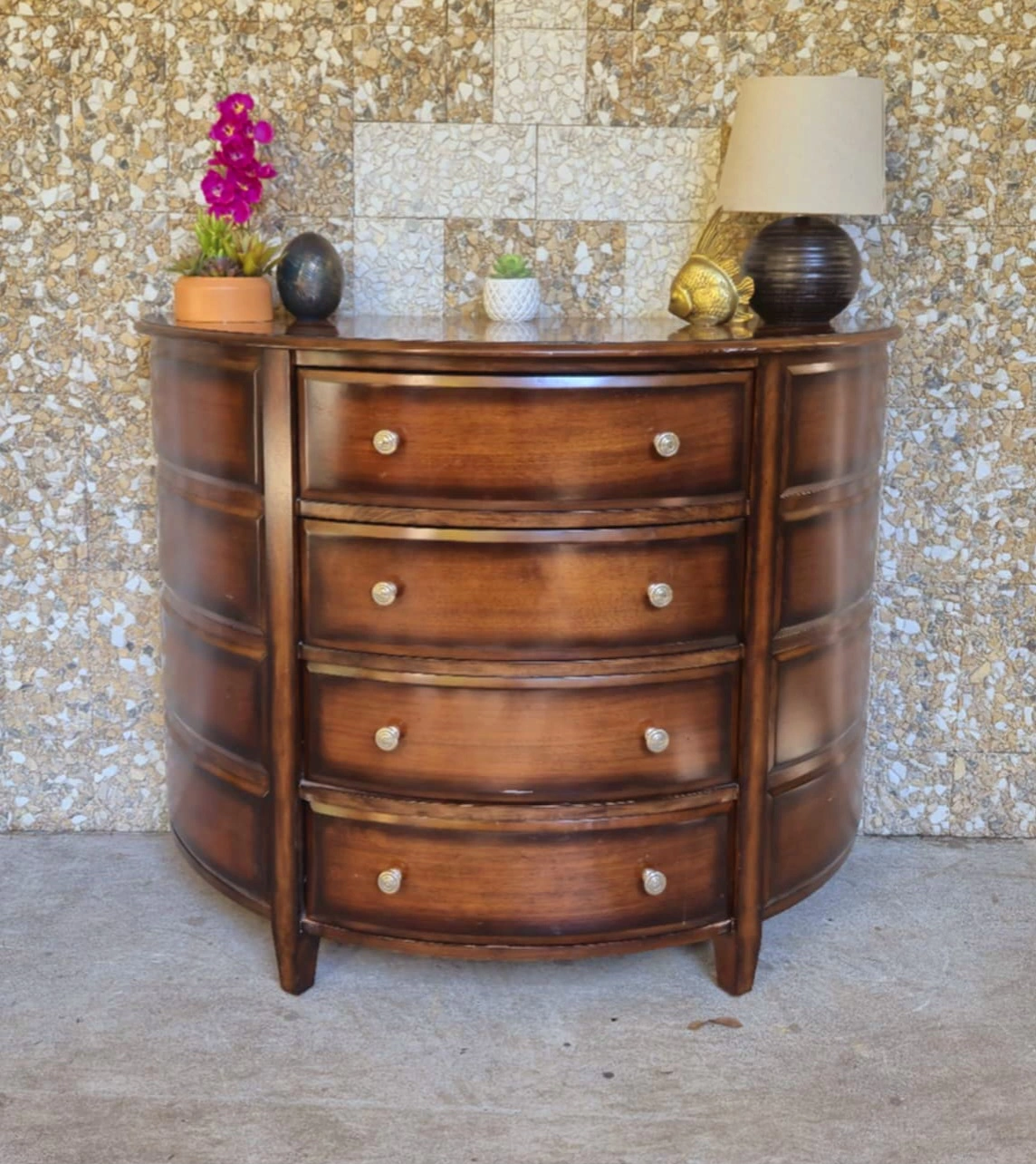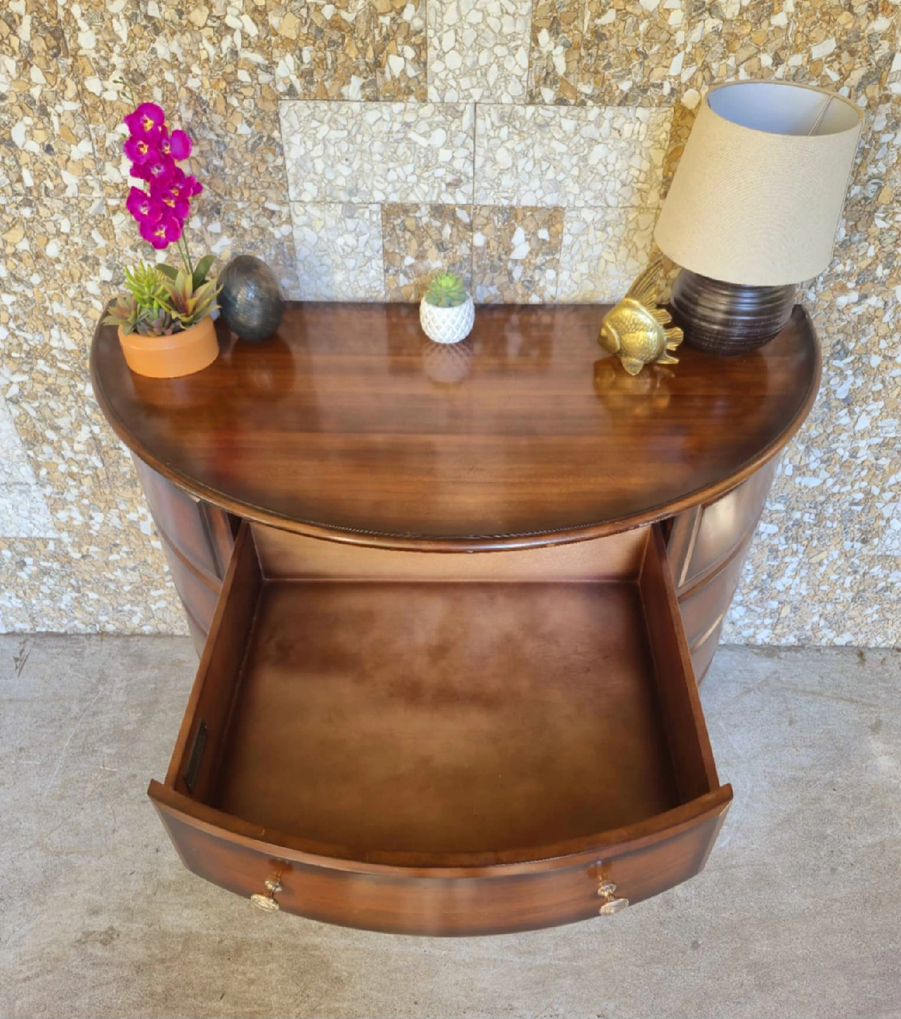 Solid Walnut Half Moon Console Table With 4 Drawers There are two available. 48 inch width x 24 inch depth x 36 inch height Delivery Available Pick up in downtown Vancouver or delivery may be arranged for a reasonable fee. Tags: retro vintage Scandinavian mcm mid century modern design furniture wesnofa Norway Denmark Danish Scandi Sweden teak walnut rosewood mahogany Bentwood Hans Wagner Hans Olsen sofa table coffee table designer solid wood westendtrends furniture film set dec vanvaluevintage local canada