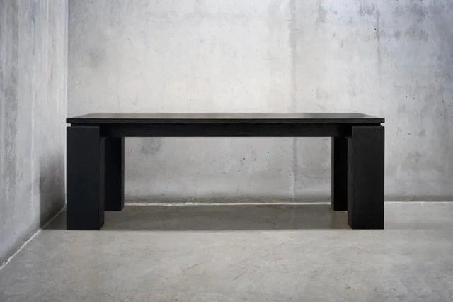 Perfect as a hallway bench, dining room bench, end-of-bed bench, or coffee table. Crafted by a seasoned artisan from North American solid cherry and finished in black hard wax oil. Dimensions: Approx. 48”W x 15”D x 17”H. This elegant bench features a modern minimalist design and sturdy construction. NEW- never been used and freshly finished, and packaged for easy takeaway. Upgrade your home with a true buy-it-for-life piece of furniture. * We can ship with a tracking number or deliver this item for an additional charge. The shipping fee will vary depending on your location and shipping rate. Please note that the full item cost and shipping fee must be paid prior to shipping.