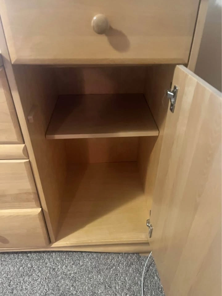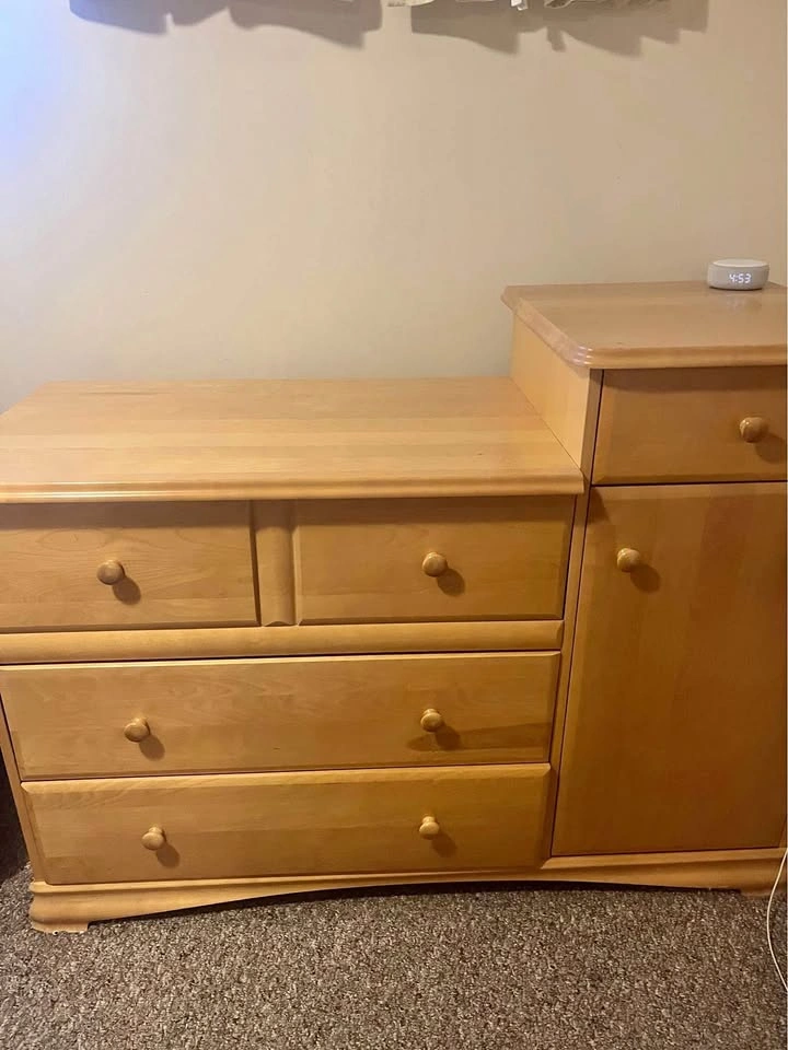 Solid wood dresser, change table. Bottom drawer comes off the tracks but is an easy fix.