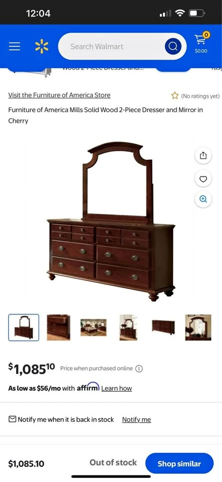 This 2-piece bedroom set includes the dresser and the mirror in cherry, features the double faced drawer fronts and unique shaped mirror. In addition, the metal pulls distinguish themselves from the rest of its kind. Each piece is made with solid wood and wood veneer for lasting quality and durability. Dresser Dimensions: 60.13"W x 16.88"D x 34.25"H Mirror Dimensions: 40.5 W x 2"D x 42.75"H Product Weight: 133lbs Assembly Required: Yes