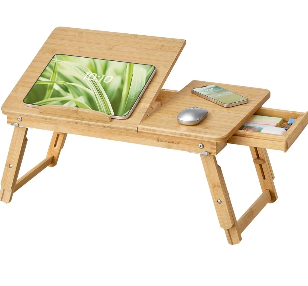 This SONGMICS bamboo laptop bed desk is perfect for working or relaxing in bed or on the couch! It also features a small drawer for storing pens and other small items. The legs are adjustable, allowing you to find the perfect height.