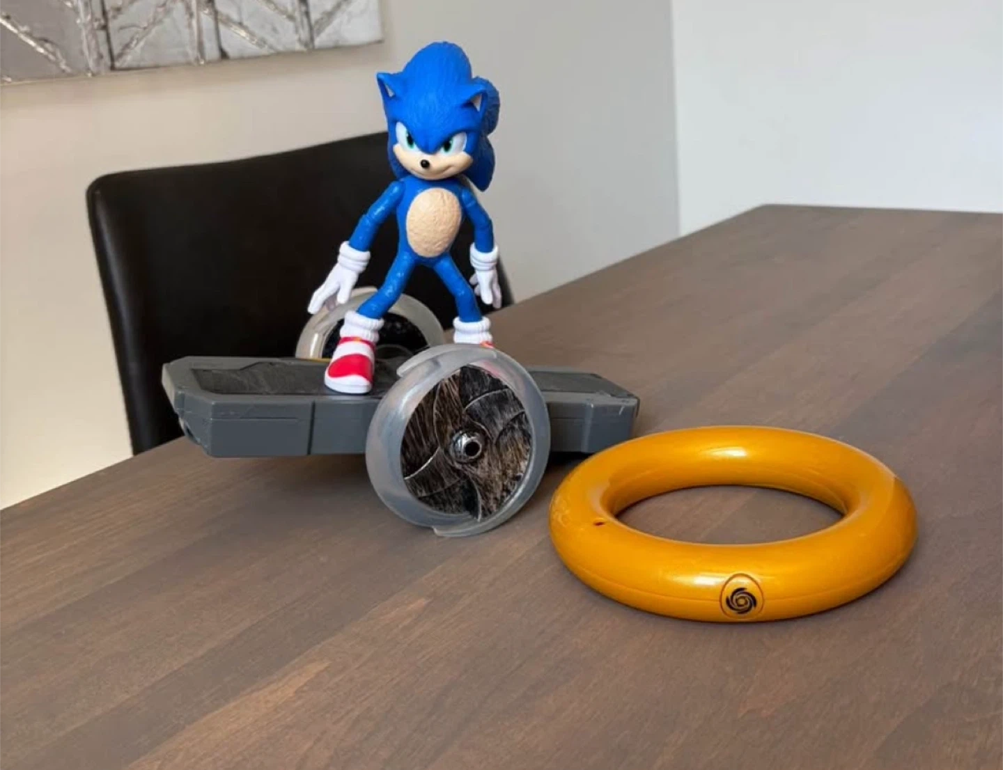 Zoom into action with this Sonic the Hedgehog hoverboard toy! It comes with a cool hoverboard and a ring controller, perfect for recreating your favourite scenes from the movie. Ready for a new home!