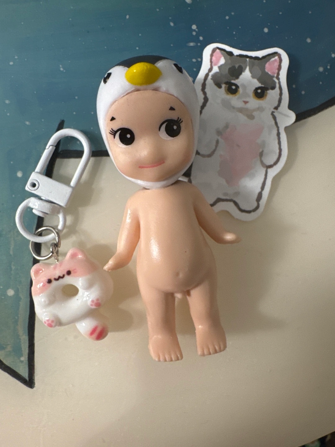 Selling a super cute Sonny Angel figure with a penguin hat! It also comes with a little cat donut keychain. This little guy is in great condition and ready for a new home!