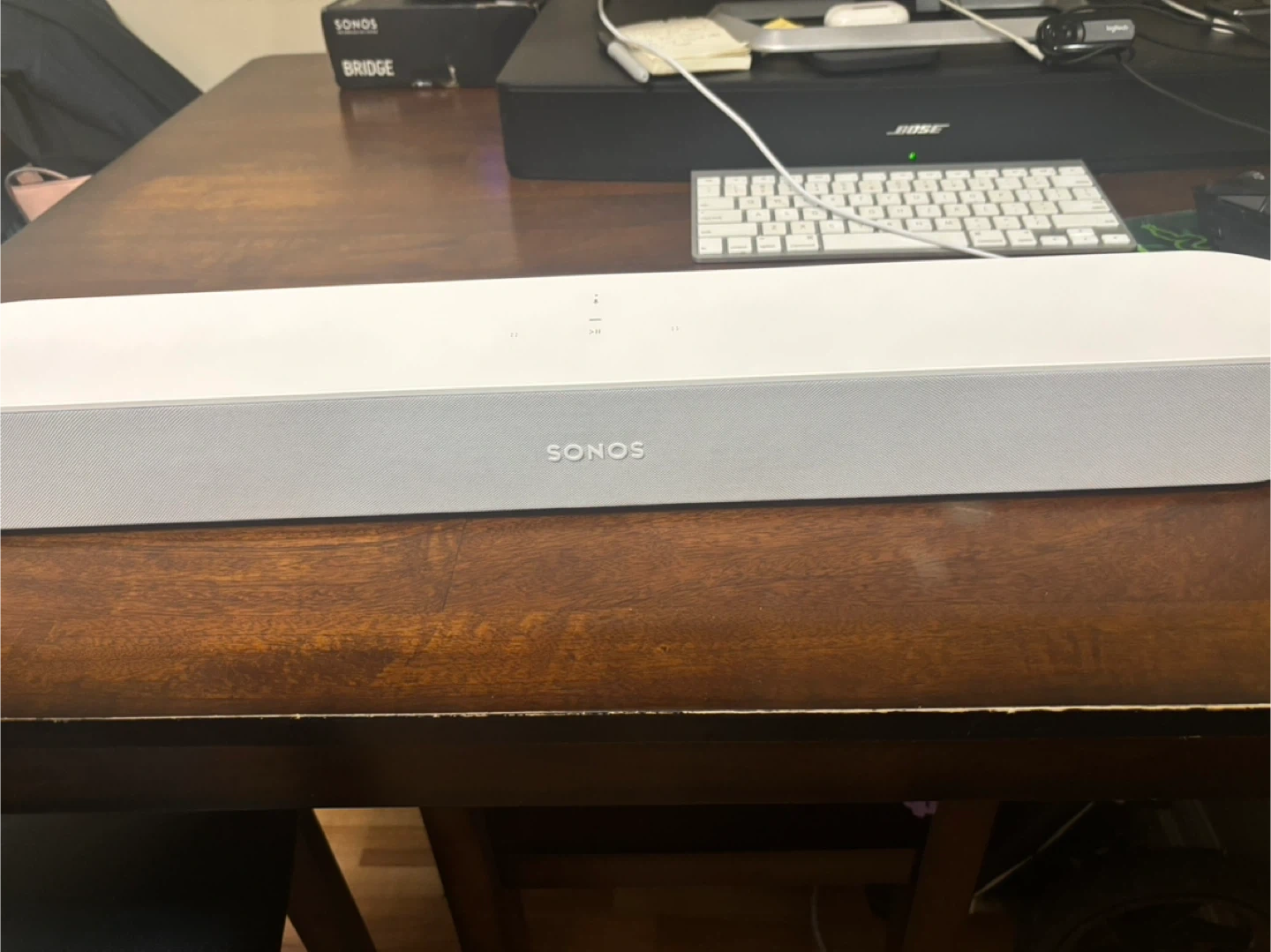 Selling a Sonos beam soundbar voice controlin white. It's in great condition and ready to enhance your home audio experience! This soundbar is perfect for smaller spaces and delivers impressive sound quality. It's super easy to set up and use with your existing TV or other devices. Get ready to enjoy your favourite movies, shows, and music with clear and immersive sound