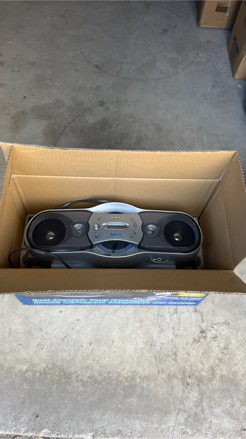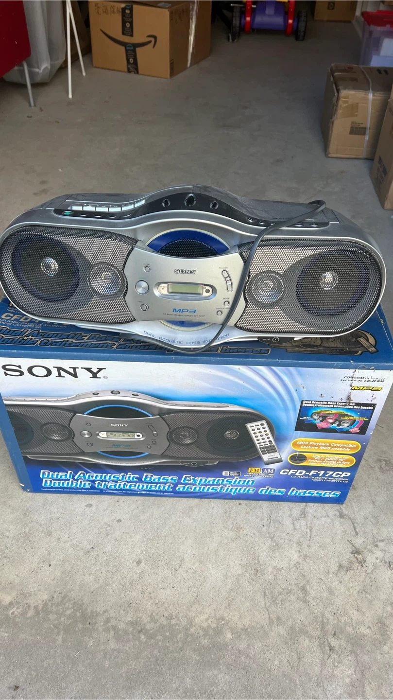 Selling a Sony CFD-S17CP boombox. It has a CD player and dual acoustic bass expander. Comes with the original box. It's in great condition and ready for a new home!