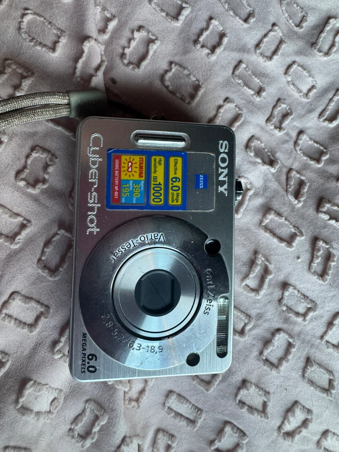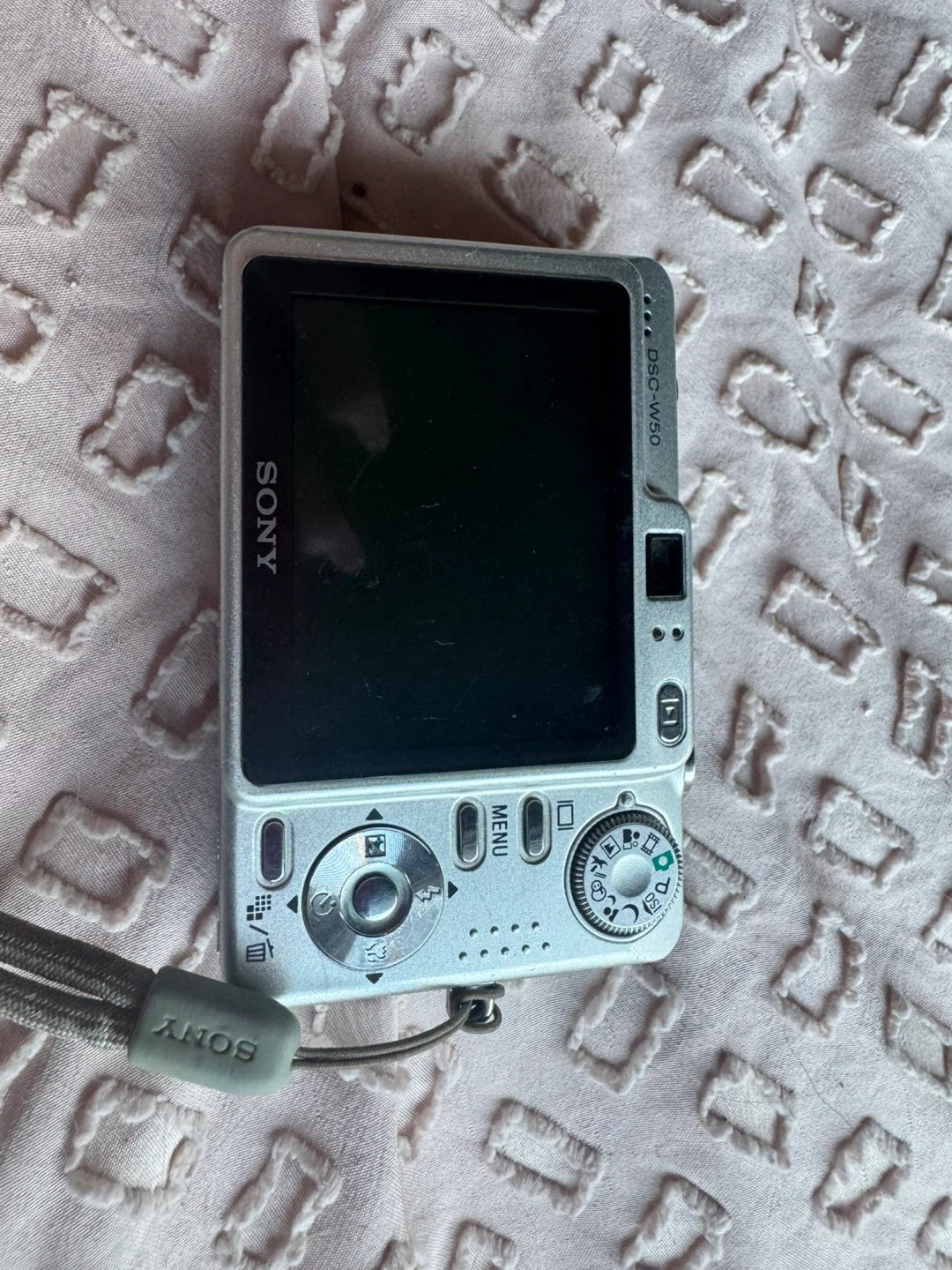 Selling a used Sony Cyber-shot DSC-W50 digital camera. It features 6.0 megapixels and a Carl Zeiss lens. The camera uses a NP-BG1 battery. It's in good working condition! Comes with battery and charged Pick up only