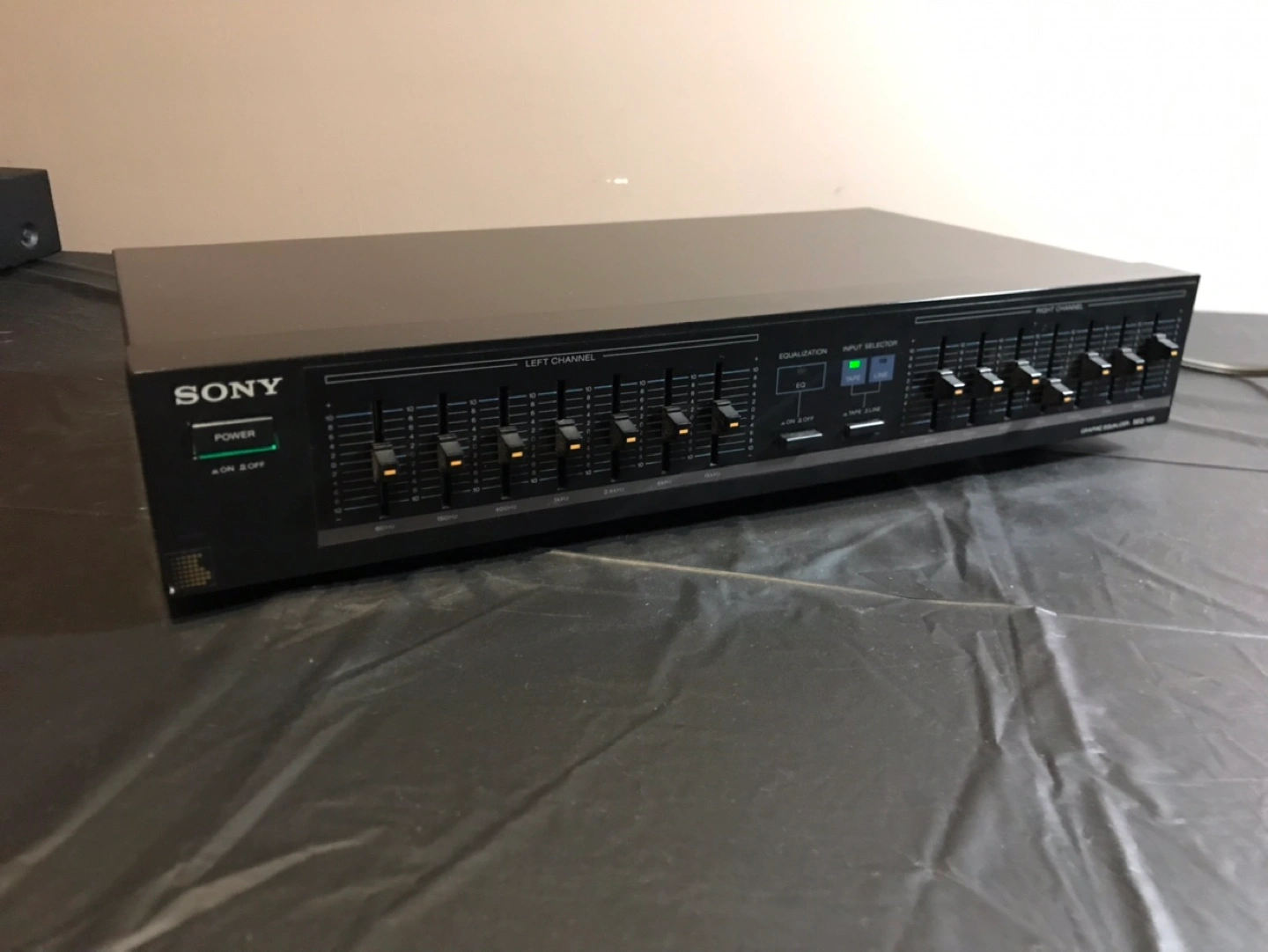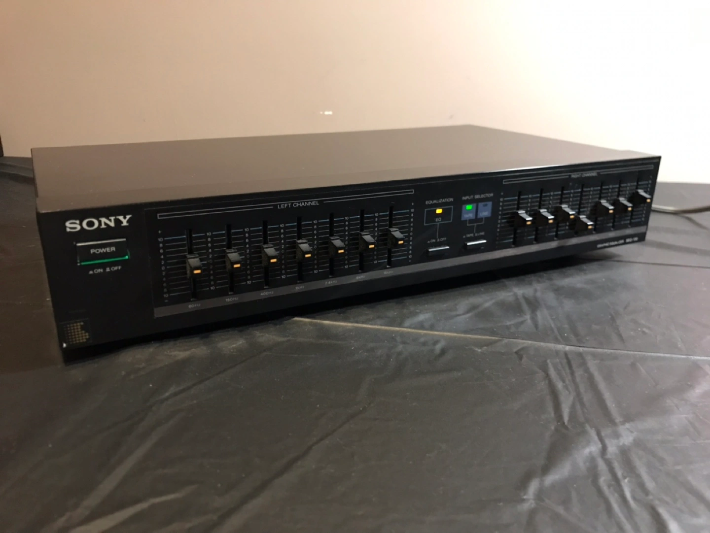 Vintage Sony graphic equalizer with 10 sliders on each channel. Sony SEQ-130