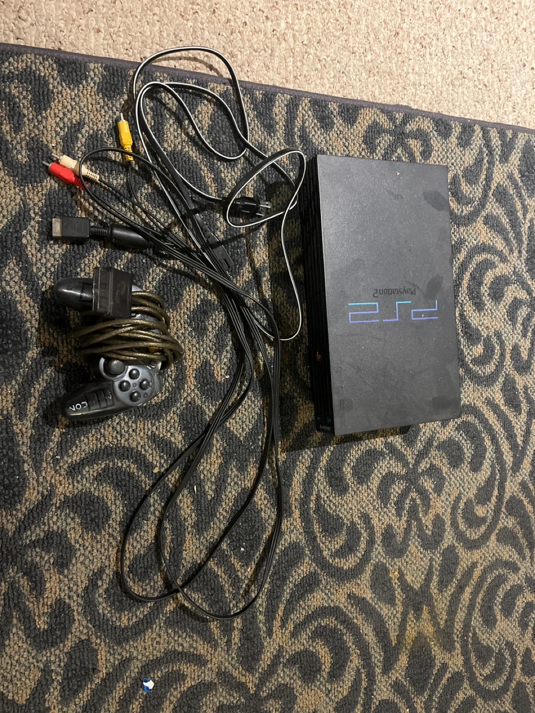 Selling a used PlayStation 2! It comes with the console, one controller, an 8MB memory card, and all the necessary cables to get you gaming right away. Great for reliving some classic games!