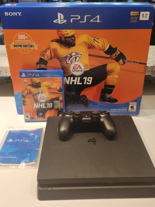 Selling a PlayStation 4 slim console 1tb bundled with the NHL 19 game! It comes with the original box and all the necessary components to get you gaming right away. Perfect for hockey fans!