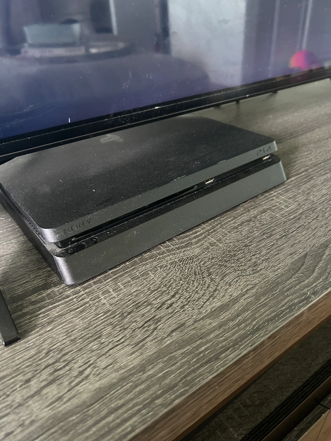Selling a used PlayStation 4 Slim. It comes with three games: Call of Duty WWII, Call of Duty Black Ops, and Middle-earth: Shadow of War. Also included are two controllers for multiplayer fun