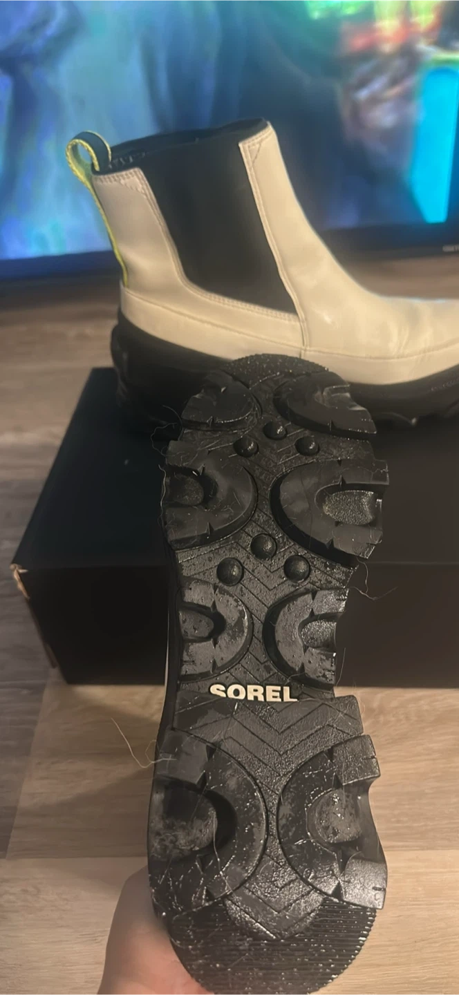 Selling a pair of Sorel Chelsea boots in size 8.5. They feature a stylish design with black and white colour blocking. The soles are durable and ready for Canadian weather! Send your offer!! Pick up: 88 Erskine ave.
