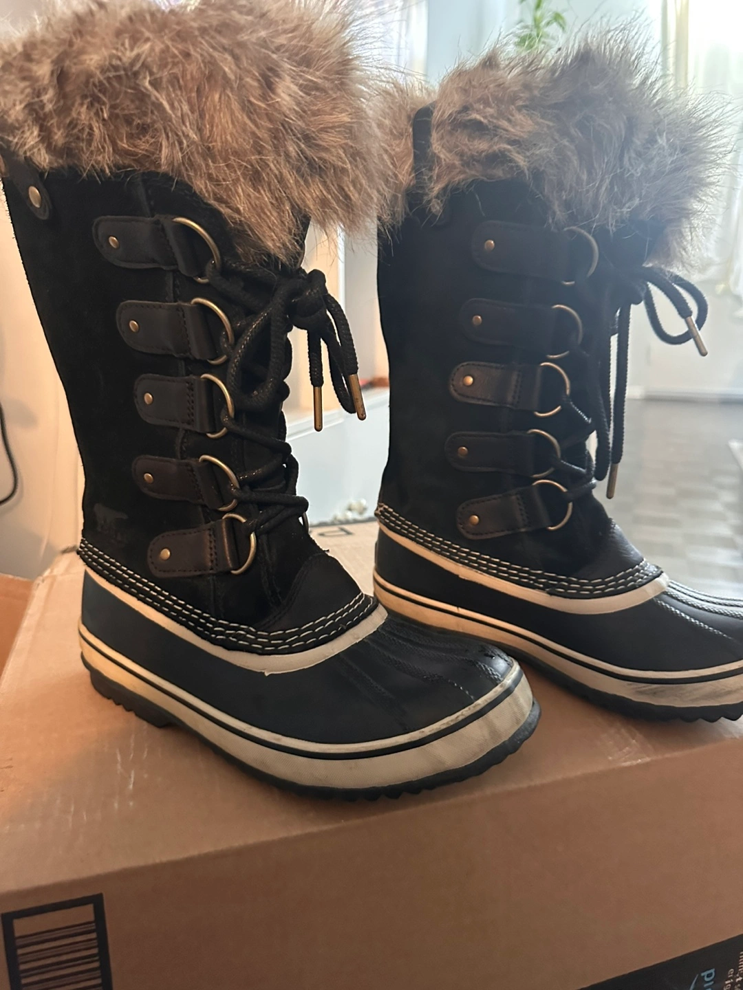 These Sorel winter boots are perfect for keeping your feet warm and dry during the cold Canadian winters! They have a stylish design with faux fur trim and are in great condition. Size 8