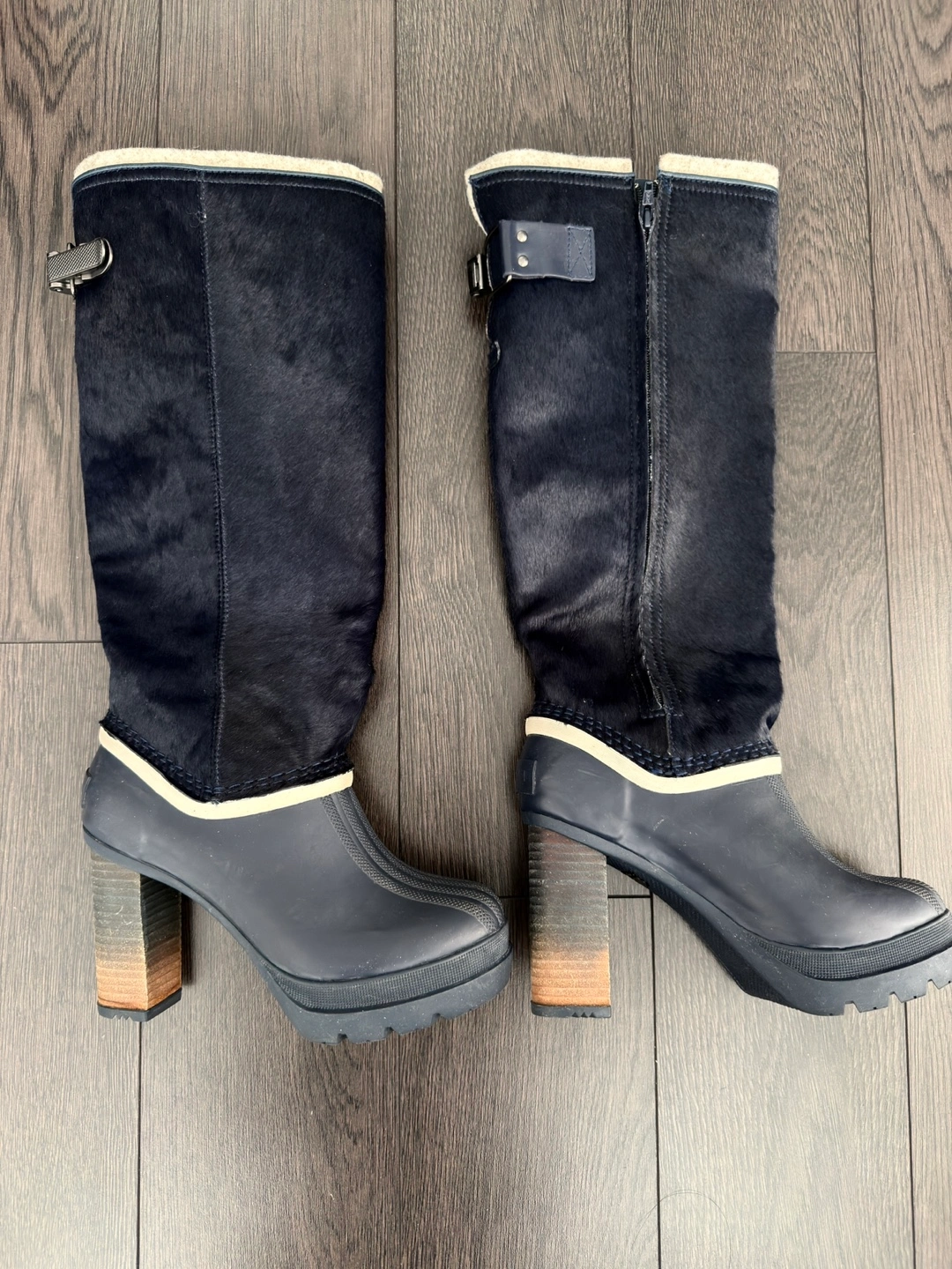 These Sorel women's boots are in great condition and ready for a new home! They are a size 5.5 US and feature a unique design with a block heel. Worn max twice. Perfect for adding a touch of style to any outfit