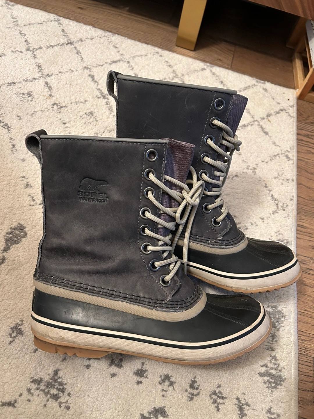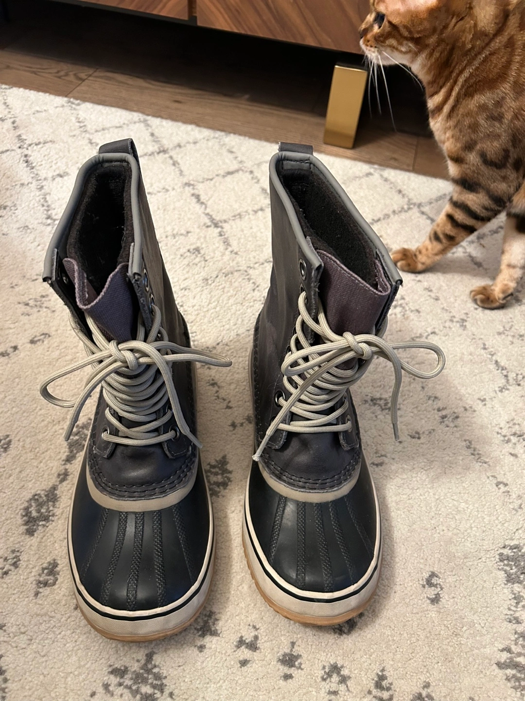 Black leather winter boots. Lace-up style. Waterproof. In excellent condition. It’s barely worn