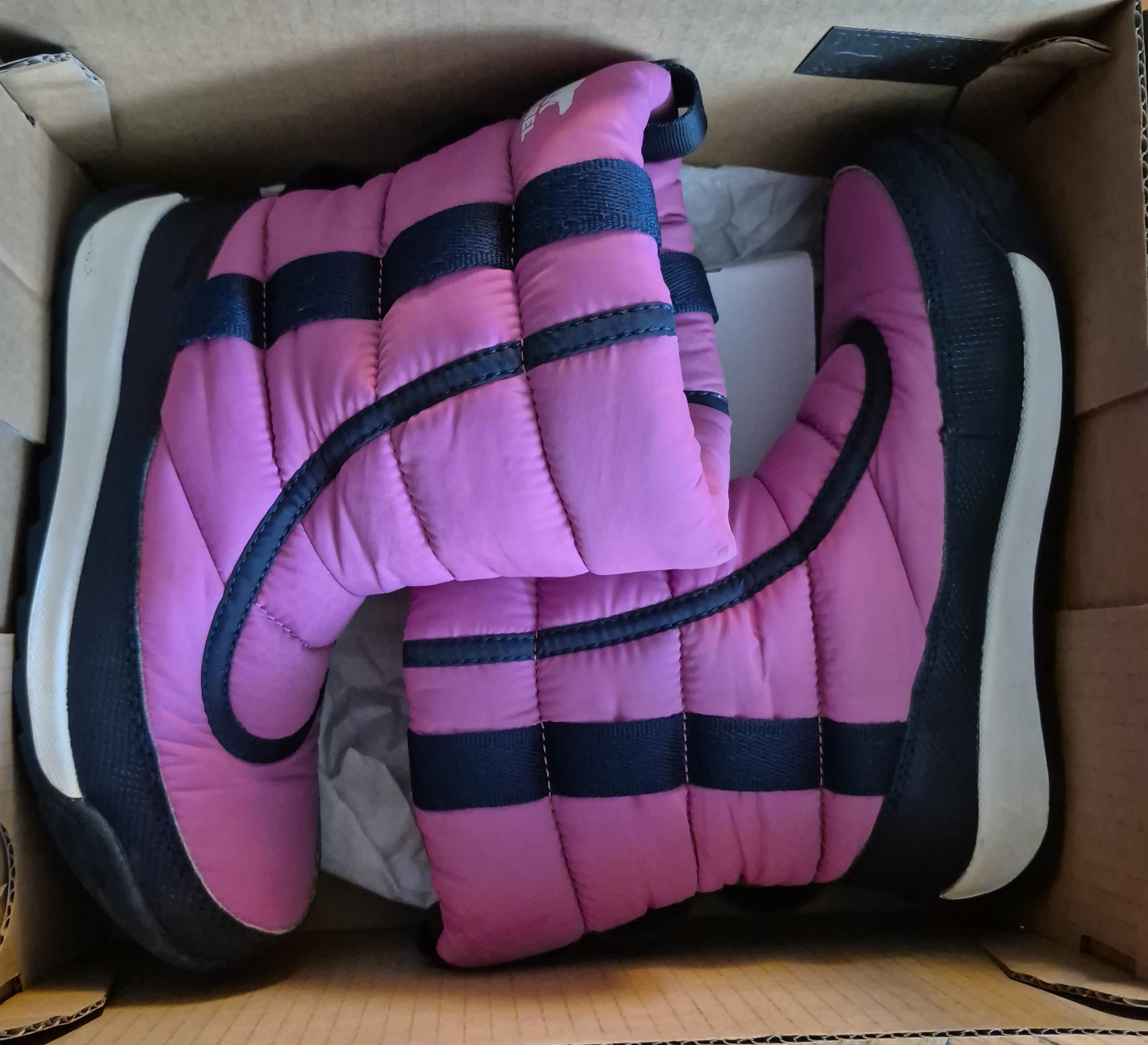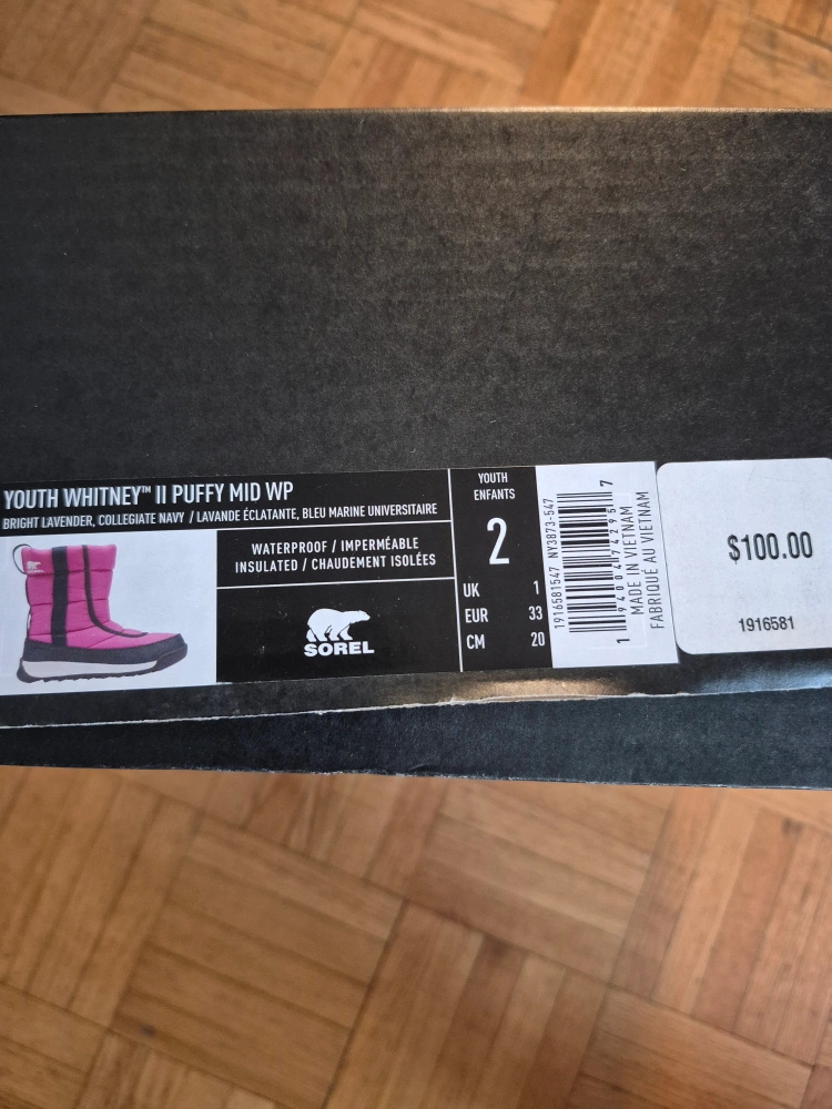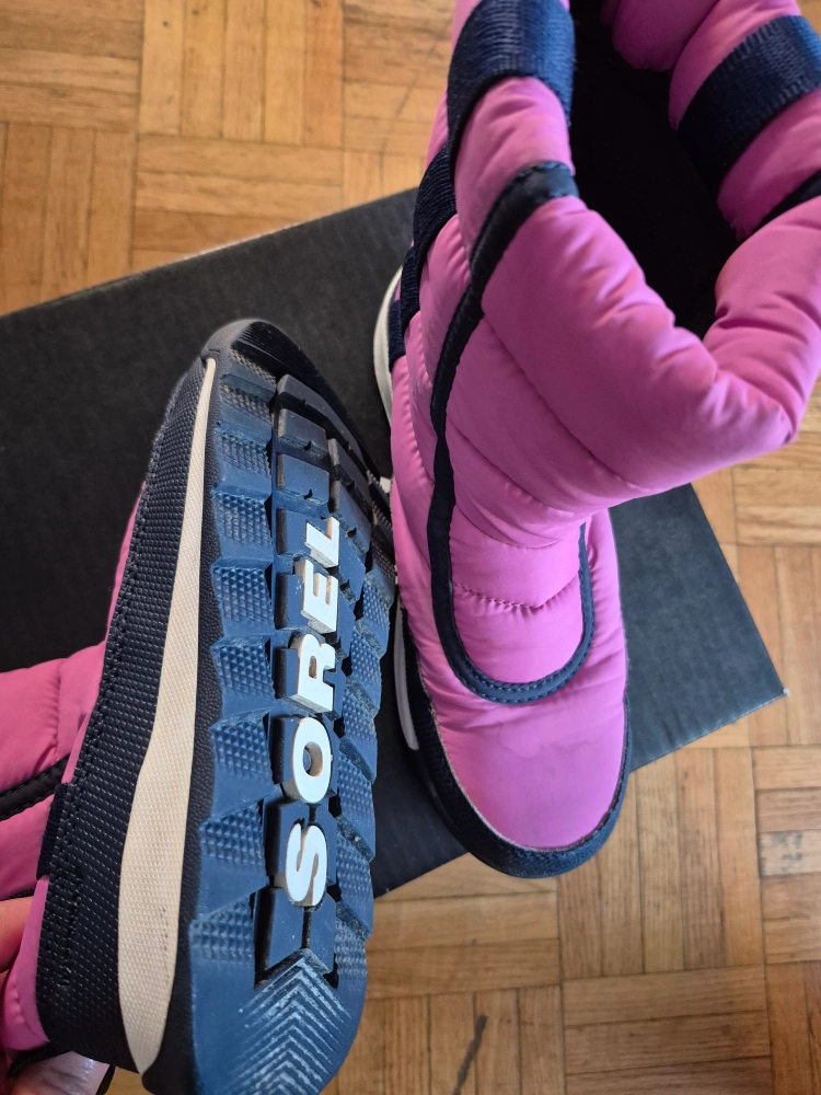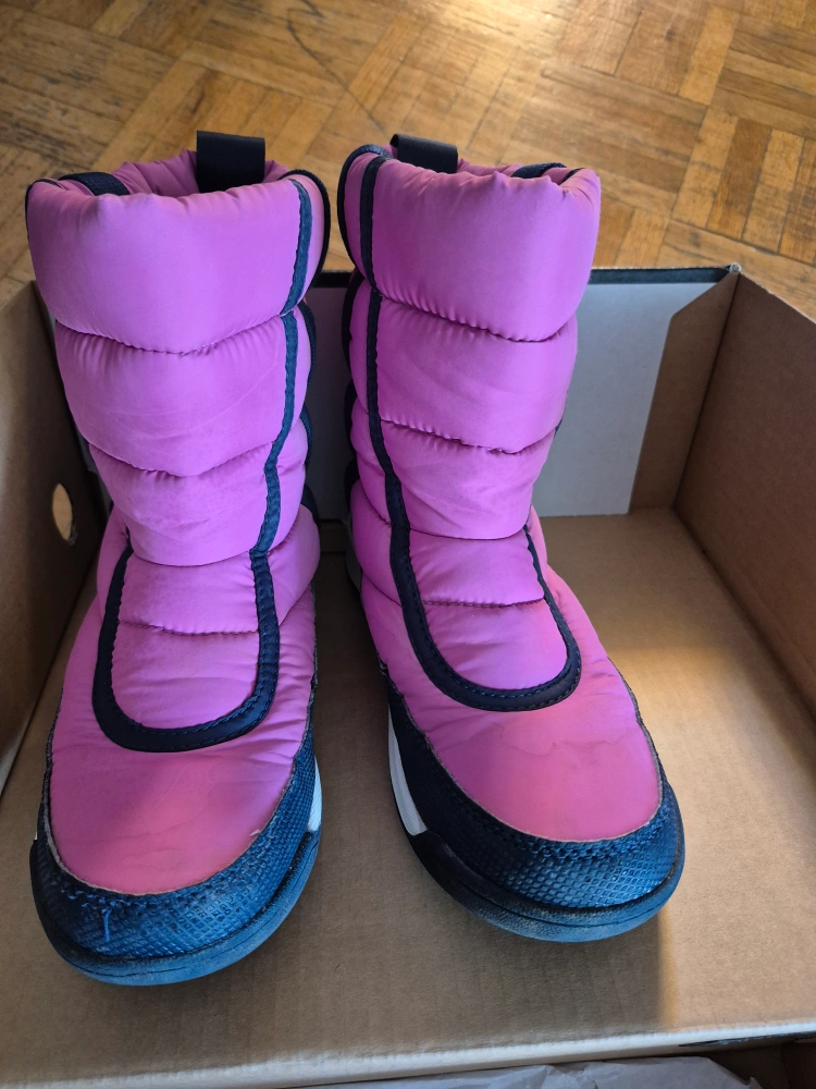 Selling a pair of Sorel Youth Whitney II Puffy Mid WP boots in bright lavender and collegiate navy! They are waterproof and insulated, perfect for keeping your little one's feet warm and dry. These boots are a youth size 2 and originally retailed for $100. Comes with the original box, used and good condition.