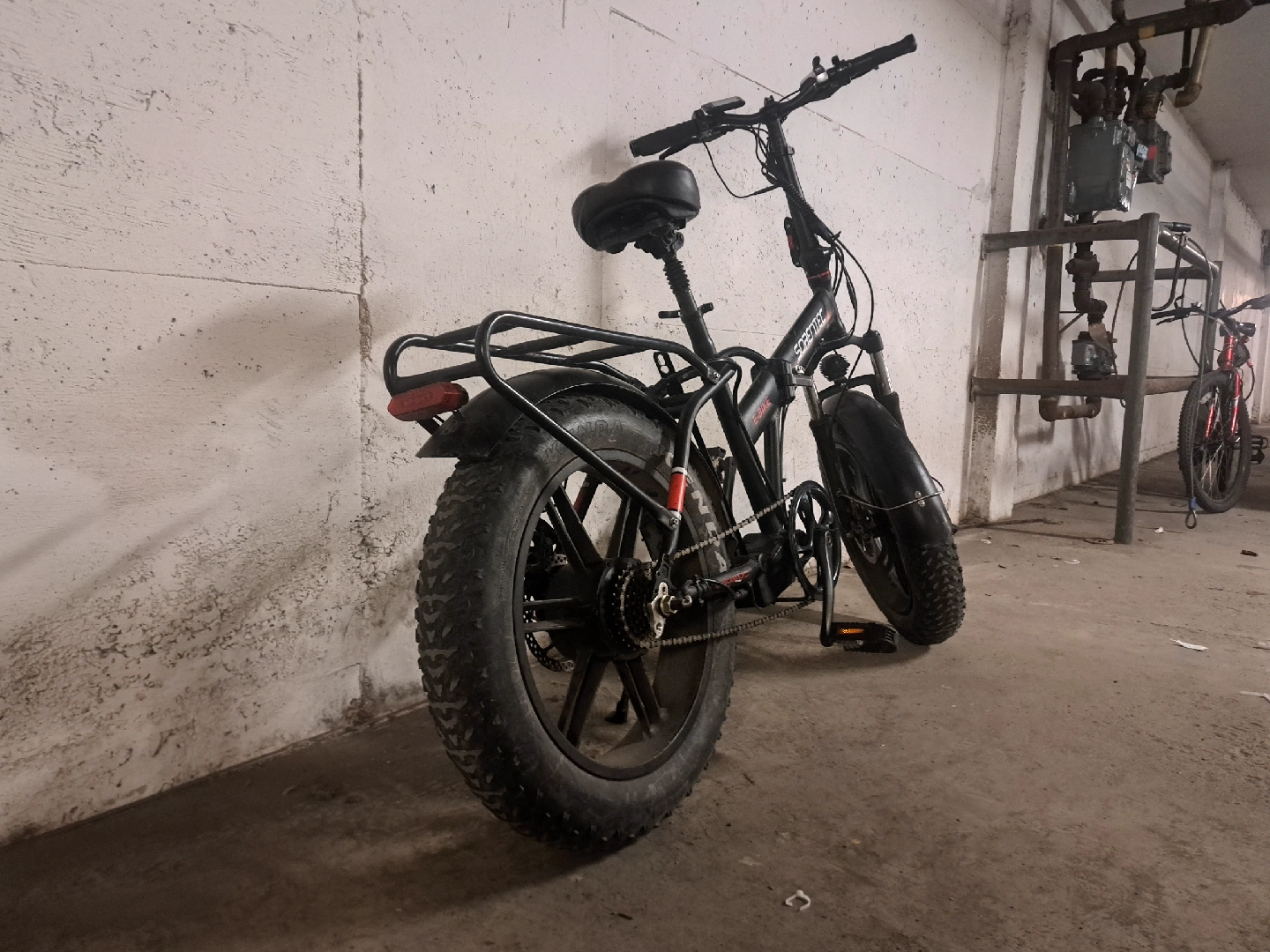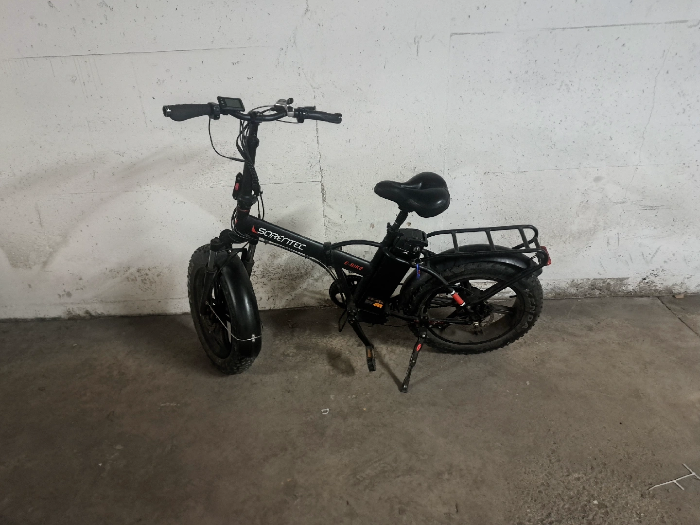 Selling a used SORENTEC E-Bike. It has fat tires with the brand name KENDA on them. It's black and has a rear rack. Good for getting around town! 15amp ebike battery. Brand new battery. 4 hour charge. No gear changing on this bike. Rear brakes need tuning. Charger not included.