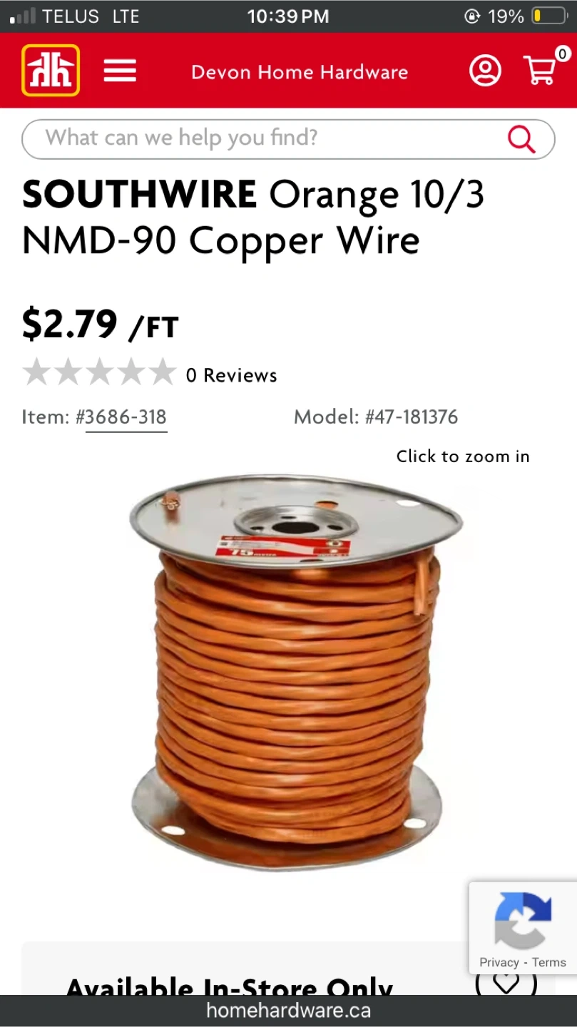 Selling orange 10/3 NMD-90 101 feet wire. Item #3686-318, Model #47-181376. $1.80/ft or $150 for all Location: Leduc but can deliver past Edmonton for a small fee
