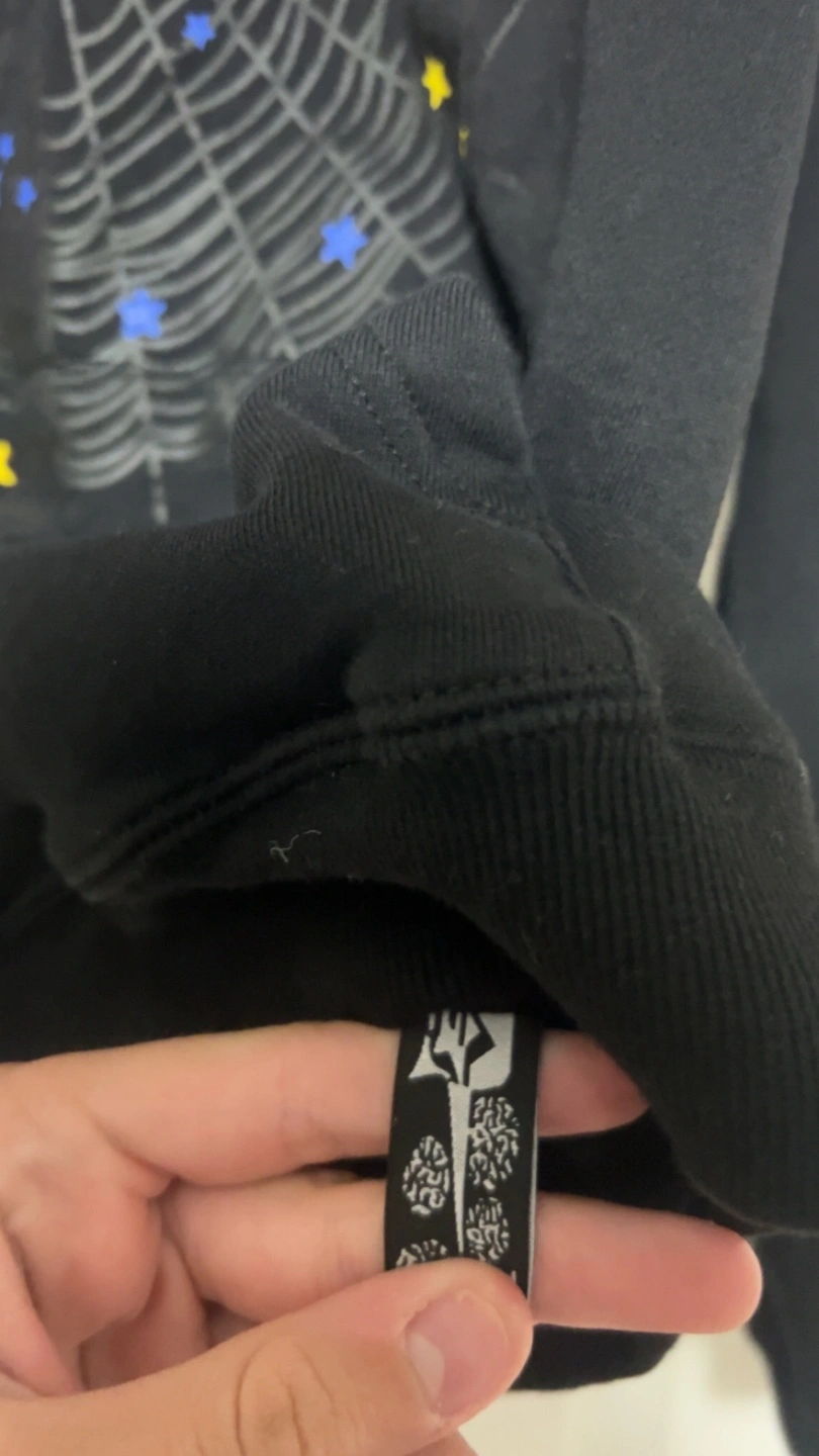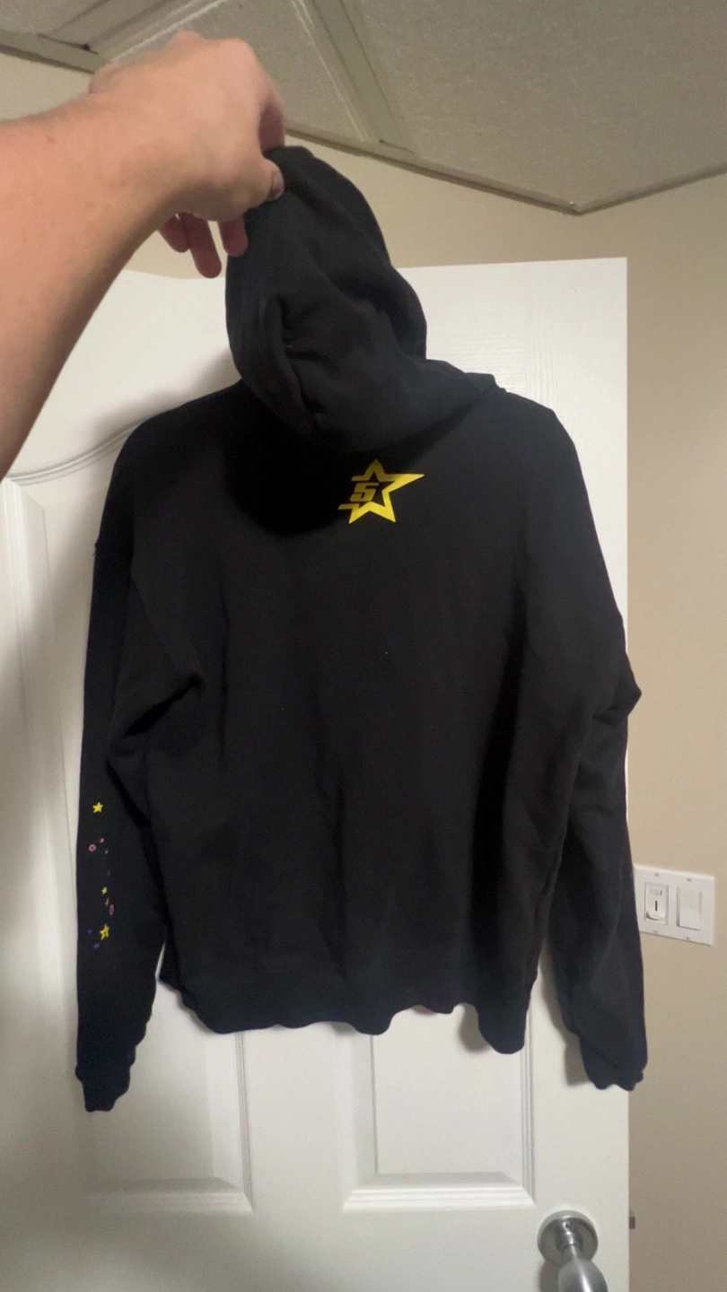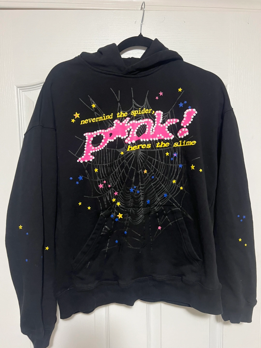 Selling a SP5DER hoodie in size medium! It's black with a unique design featuring a spiderweb and the words "nevermind the spider, here's the slime". The hoodie is in great condition. Fits a bit smaller. Pick up northside Edmonton.
